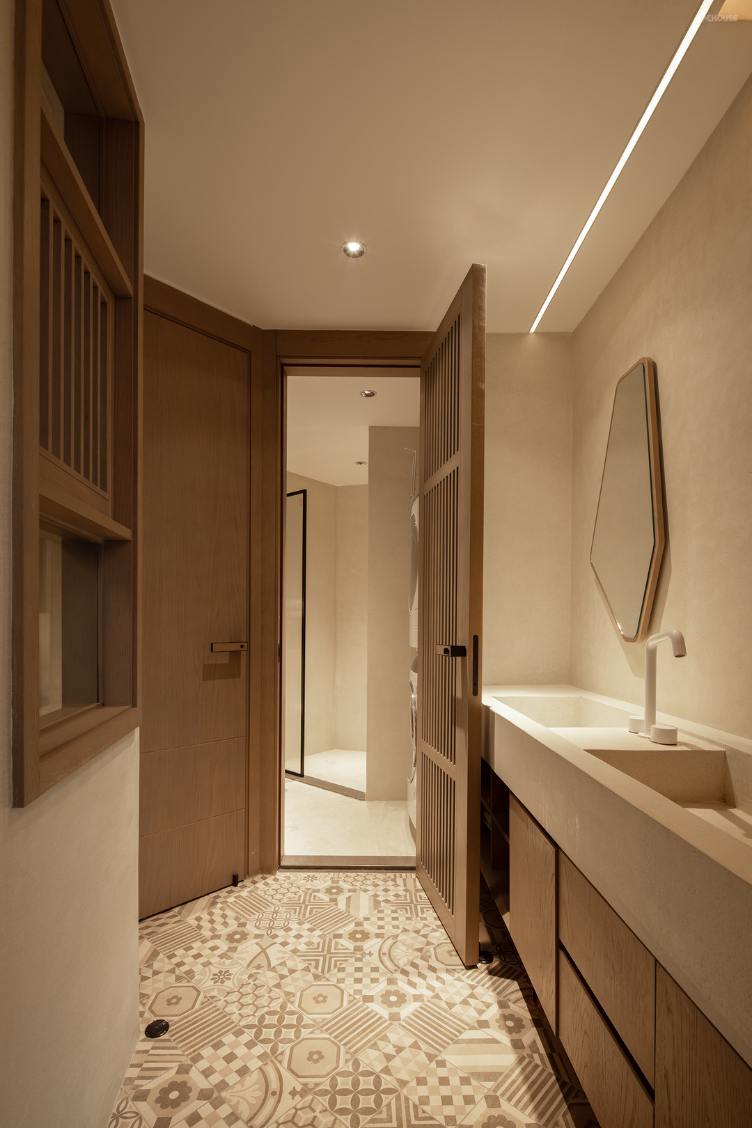 3. 增加过道的设计感,使原先狭长的过道更富有可观性。