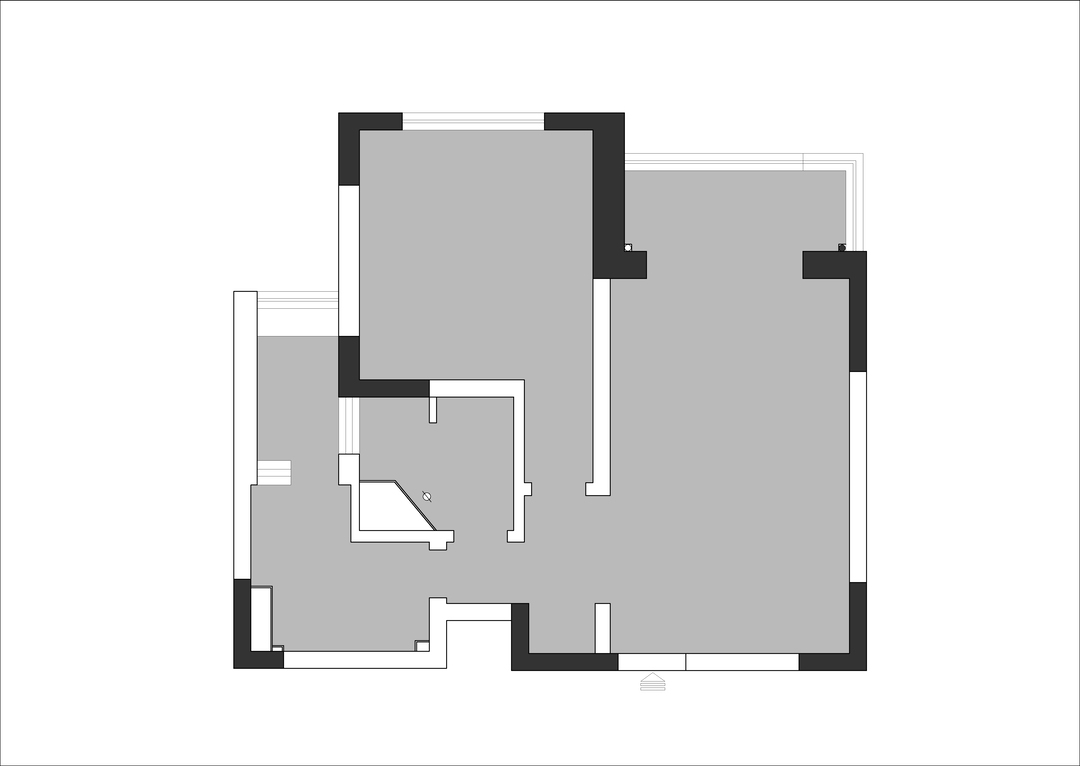 原户型如图所示,为“品”字型,使用面积55平,作为一房而言,其实不算小。但由于隔断较多,导致南向仅有的一点点采光,也被隔墙遮挡得严严实实,不仅采光极差,空间与空间之间也毫无互动性,更不要说空气的流通性,让人感觉闭塞又拥挤,白白浪费了窗外无敌的自然光景。