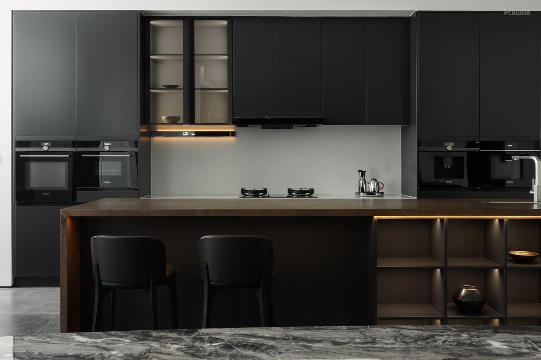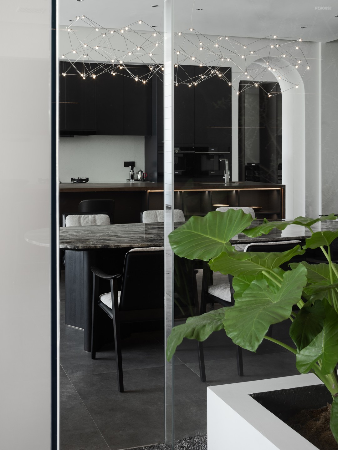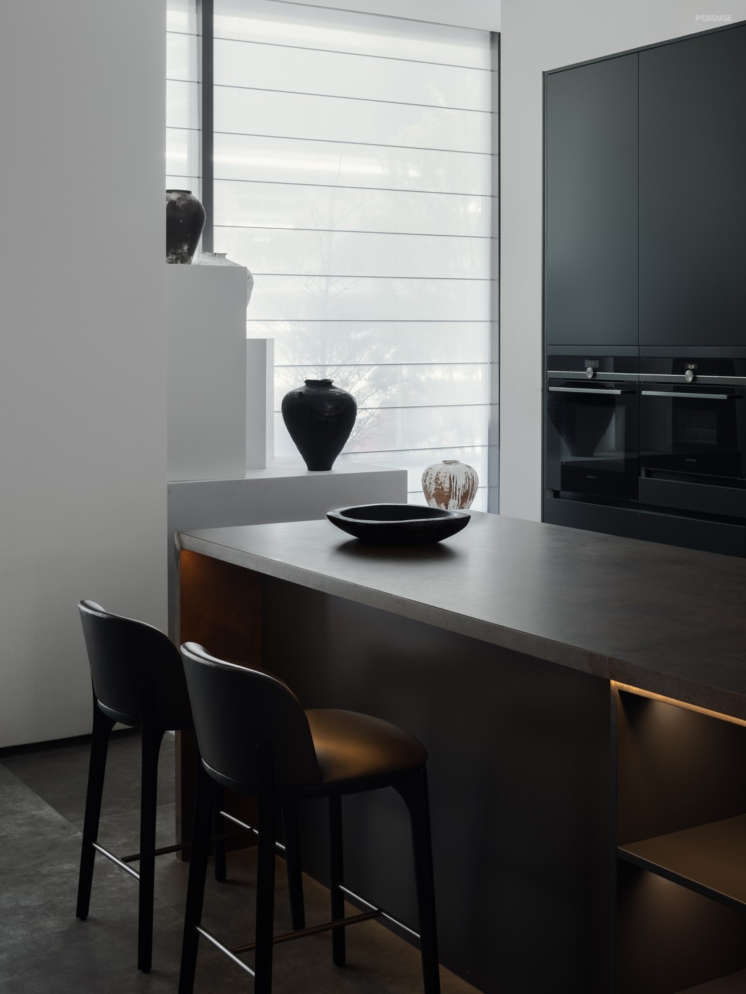 餐厅区域的厨房和大岛台以开放式的设计为中心点,按照生活方式去进行思考设计,3.6米的岛台开放厨房,与奢石餐桌的互动,餐厅大岛台的空间布局旨在为您提供一个舒适、宜人和互动的用餐体验。无论是与家人共进晚餐还是与朋友聚会,这里都会给您留下美好的回忆,品尝精心准备的美食,并享受愉悦的用餐时光,为您提供了一种交流互动的用餐体验。