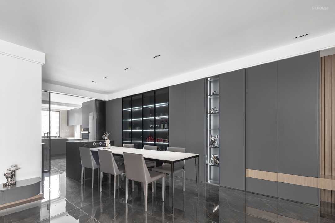 家里居住人口多,孩子也都在爱玩爱跑的年纪,零食、书本、玩具非常多,因此这个新家需要大量的收纳空间。除此之外,家里还经常有朋友来聚会,餐厨空间也要开放、面积足够。