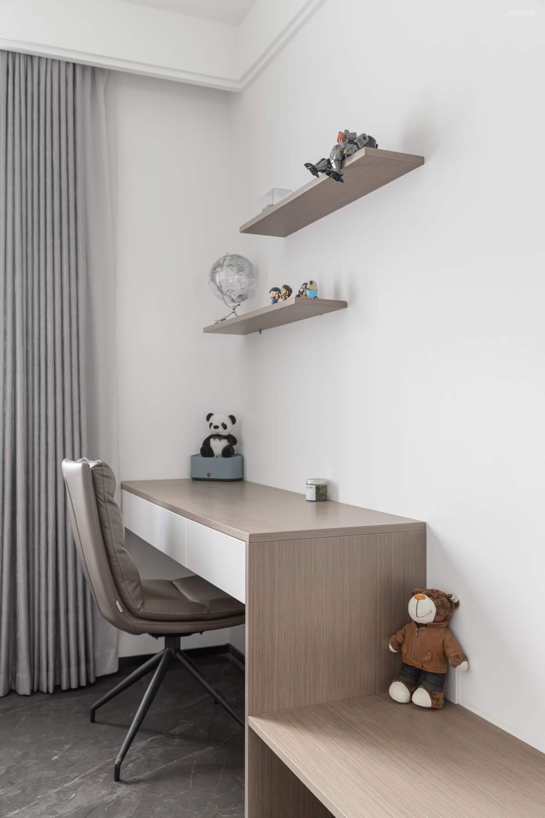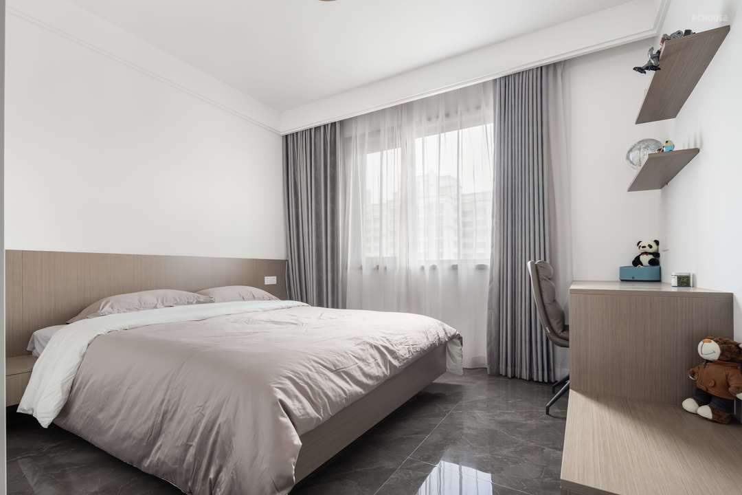 本案原始户型承重墙较多,户型调整不大,但在功能上,满足了一家四口的居住需求。