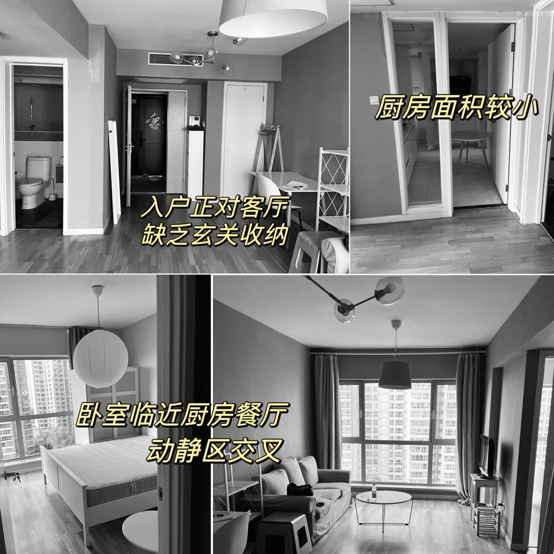 ③ 不同功能区面积占比不合理,造成部分面积浪费。原厨房和餐厅面积较小。