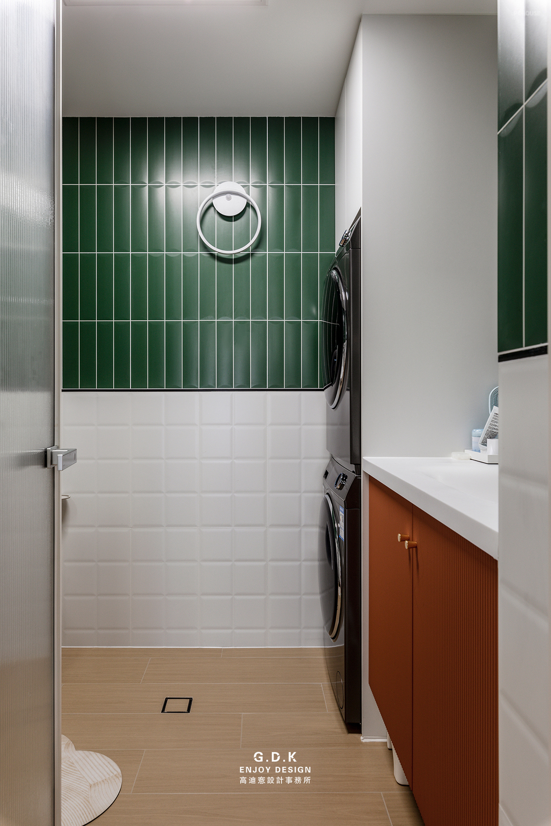 顶面弧线由餐厅一直延伸到阳台,形成一个起伏的波浪,将整个空间围合起来,柔和了空间内的直线条和转角的硬朗,带来有趣的变化和生机。