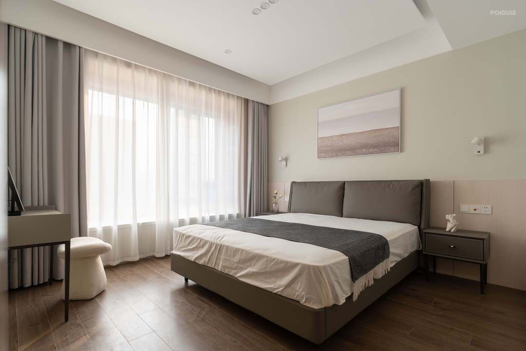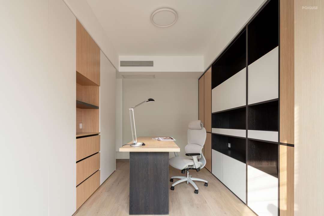 我们在原始地砖的基础上铺设超薄木地板,拆除一件次卧改为开放式书房,女儿房新建隔墙,保证卧室隐私。