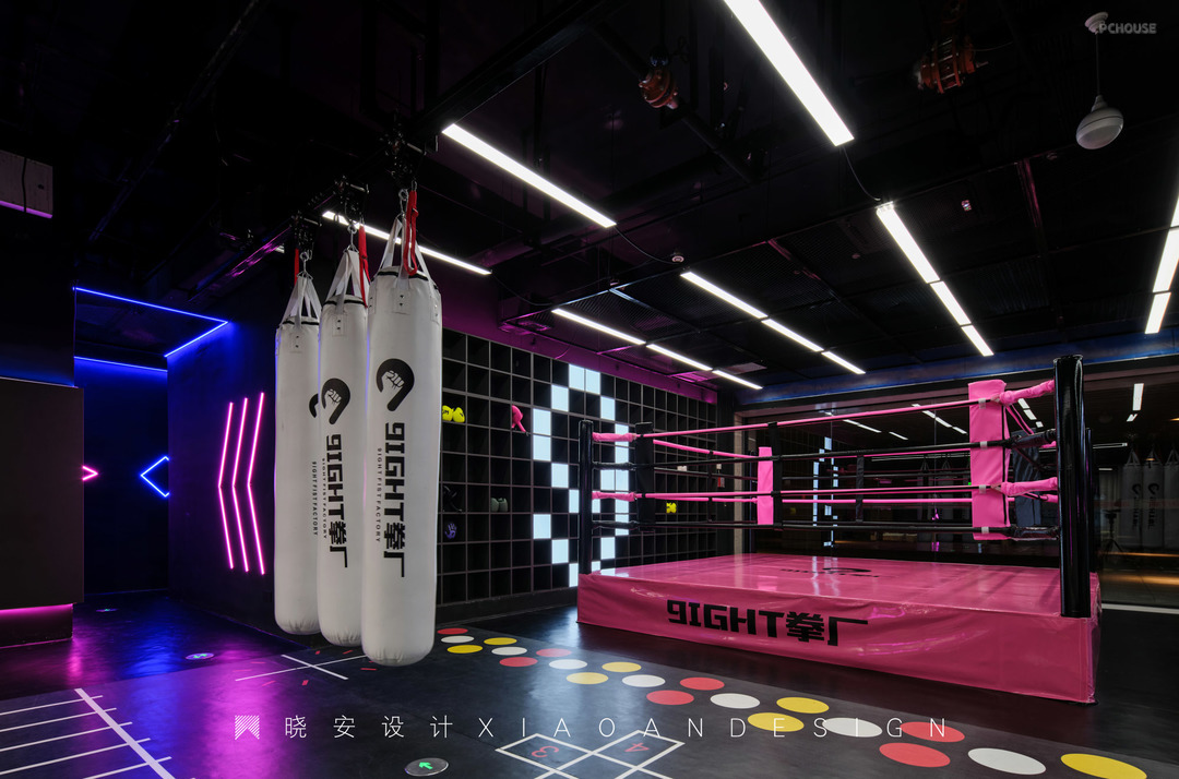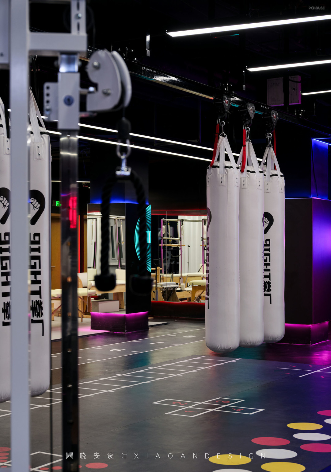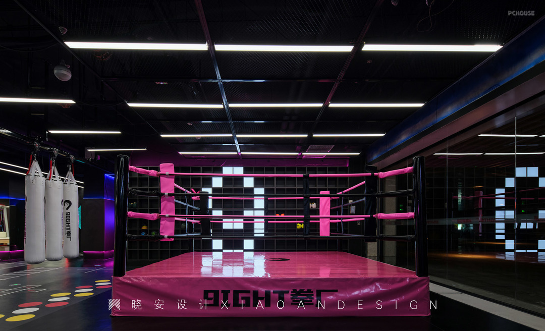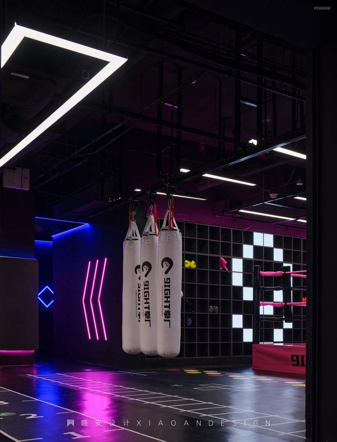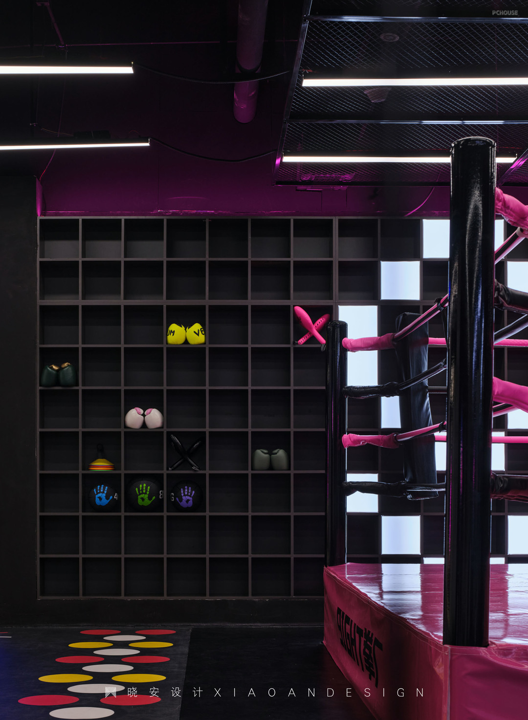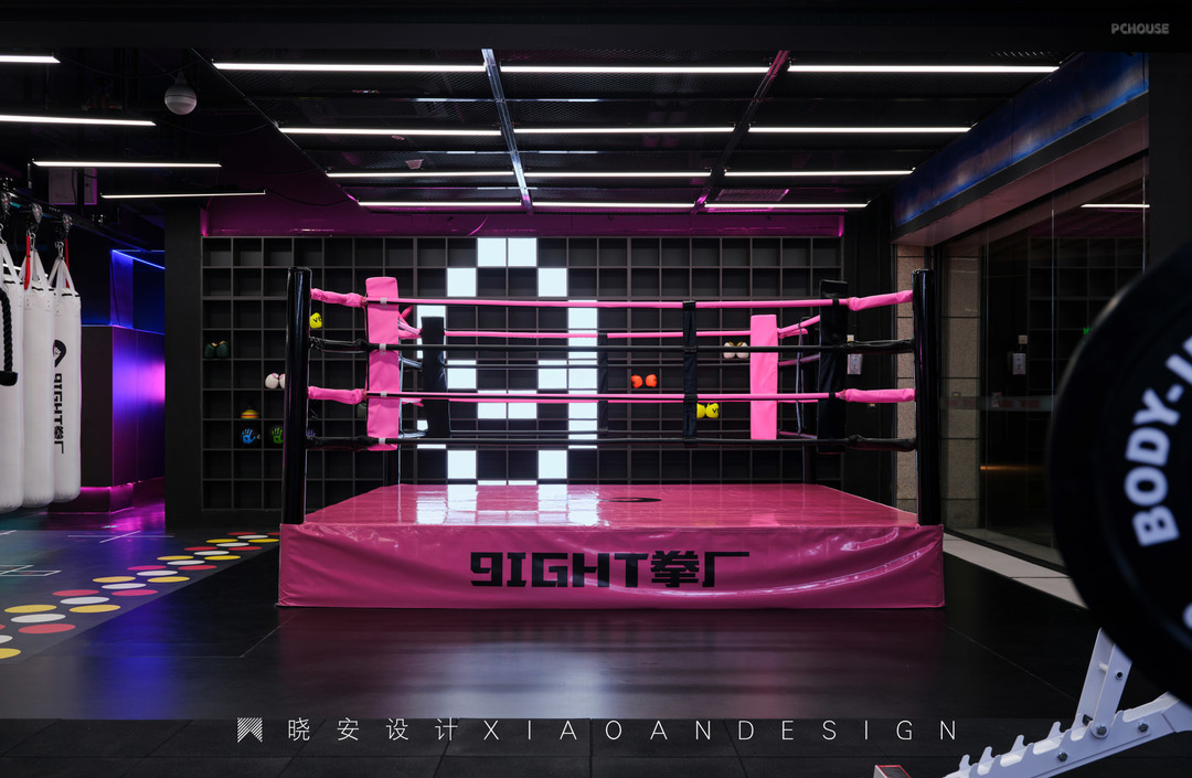 规划一片独立的区域,根据拳击擂台的方正属性,结合居中布局的处理手法,彰显运动的氛围与律动,鼓励人去释放、去重塑、去收获。