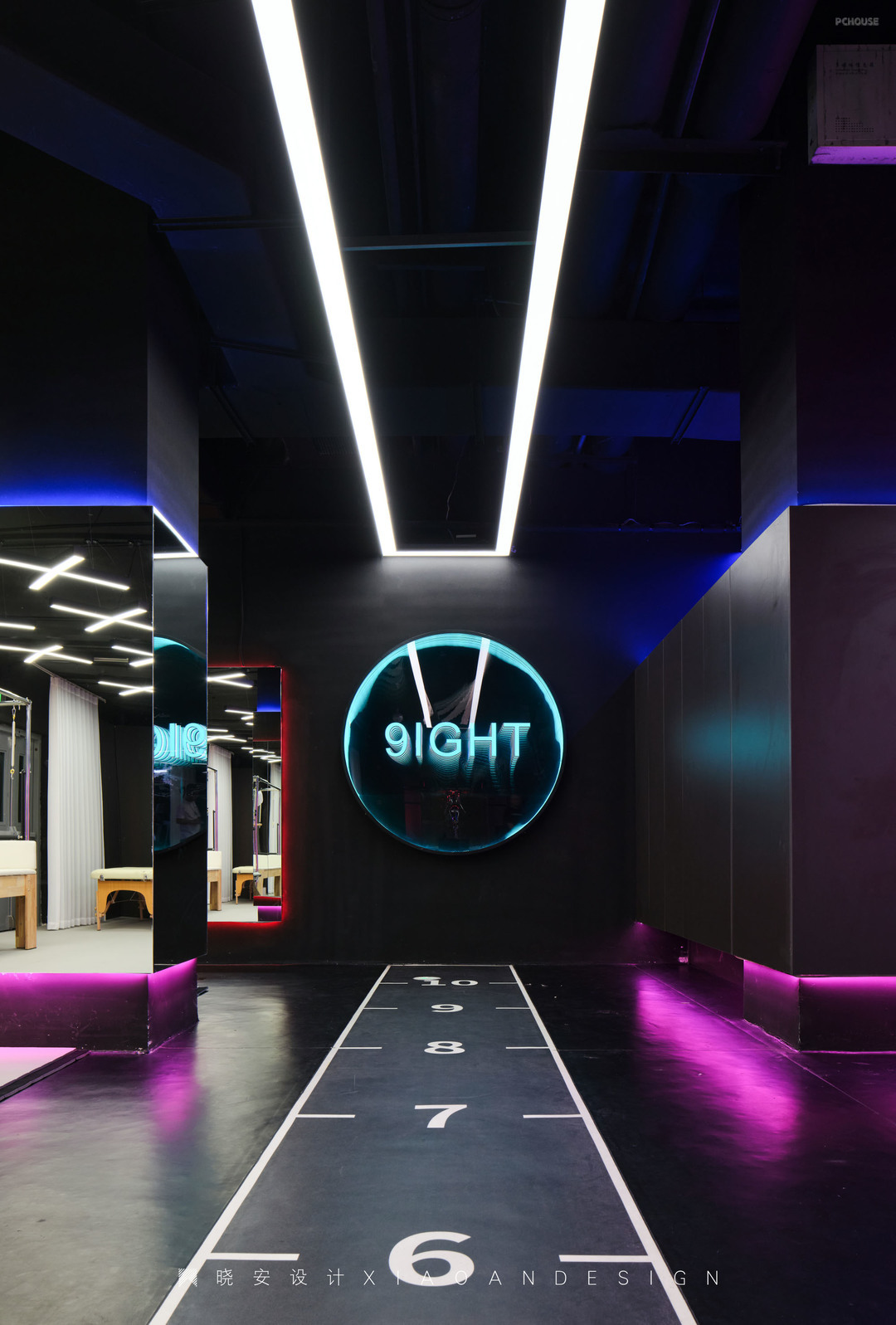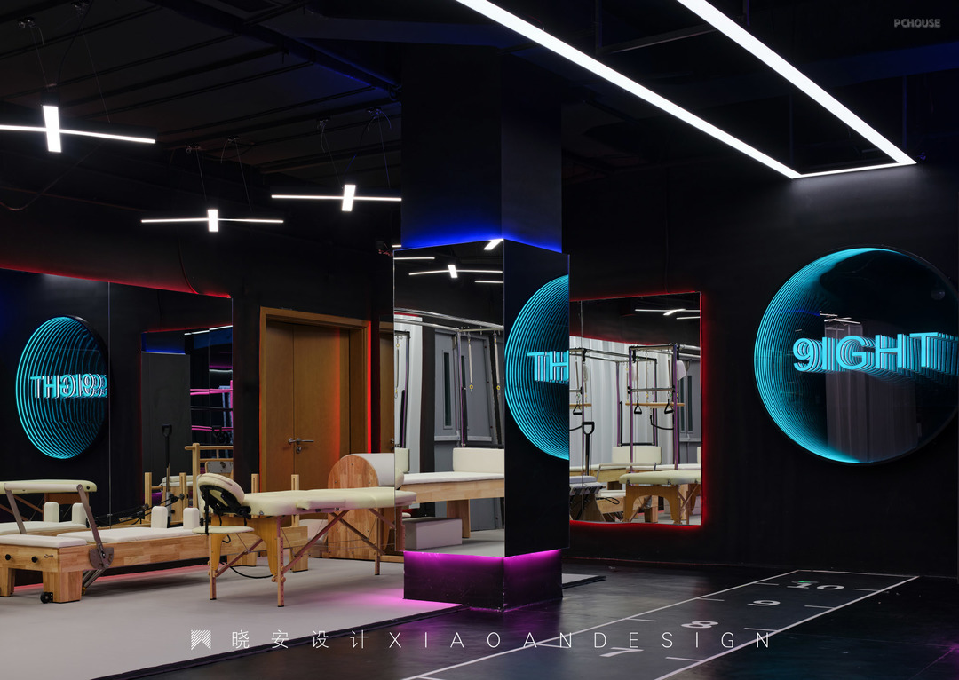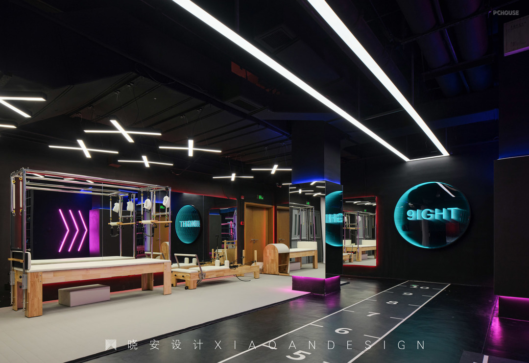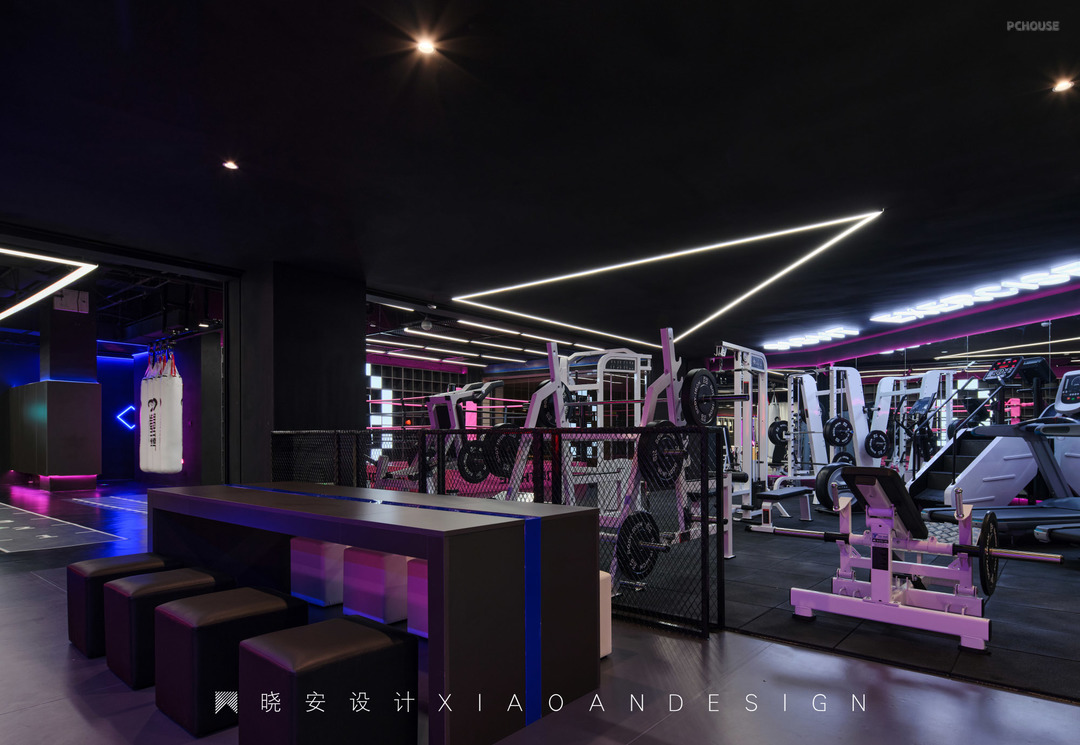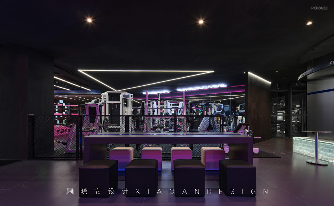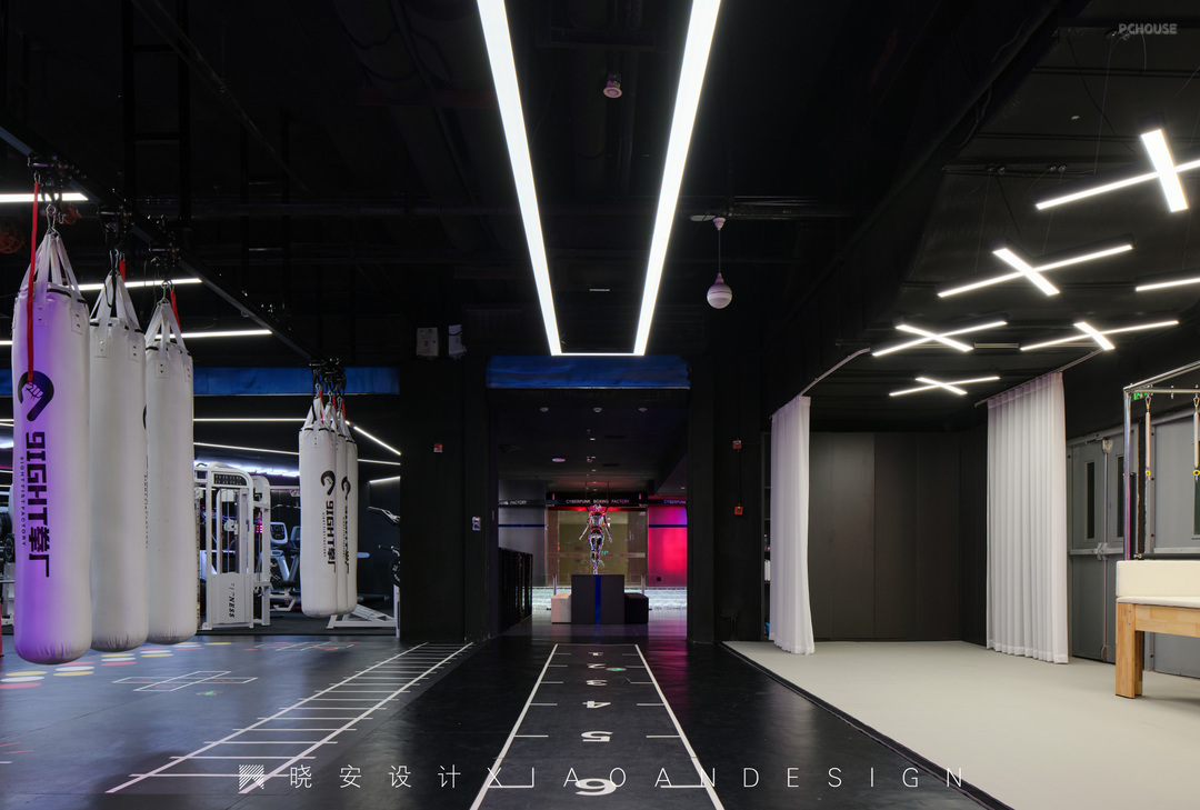 集中布置运动器械,烘托能够互相感染的运动氛围,利用极简主义的设计准则打造休息区,与过道呈贯通气势,加强了空间延伸感与流动感。