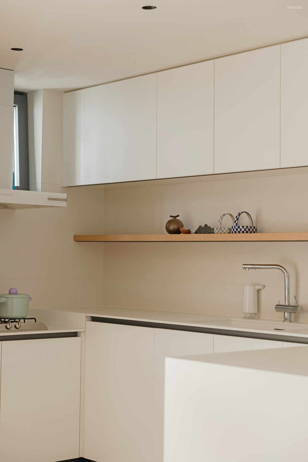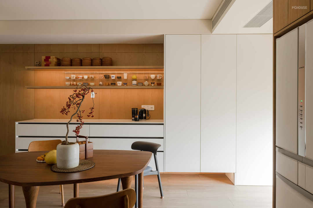 ●餐厅选择了异形餐桌,“围合式”的空间布局,让日常生活中的收纳、操作都有更丰富的选择。