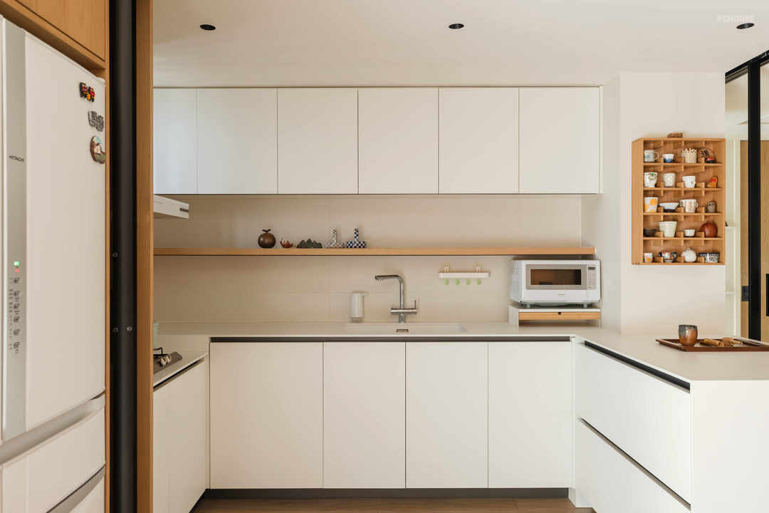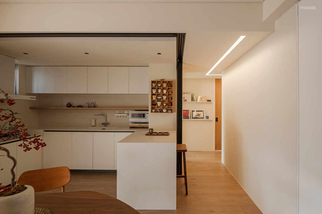●厨房空间可以通过联动推拉门进行封闭,避免油烟的困扰。