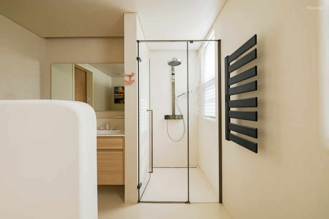 ●衣帽间做了弧形门洞,墙上也留了圆洞,引入自然采光,增加空间的趣味性。