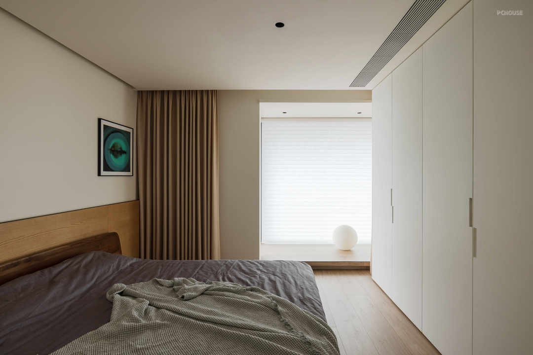 ●主卧以简洁为主,向观景阳台扩展的区域做了地台,增加视觉的层次。