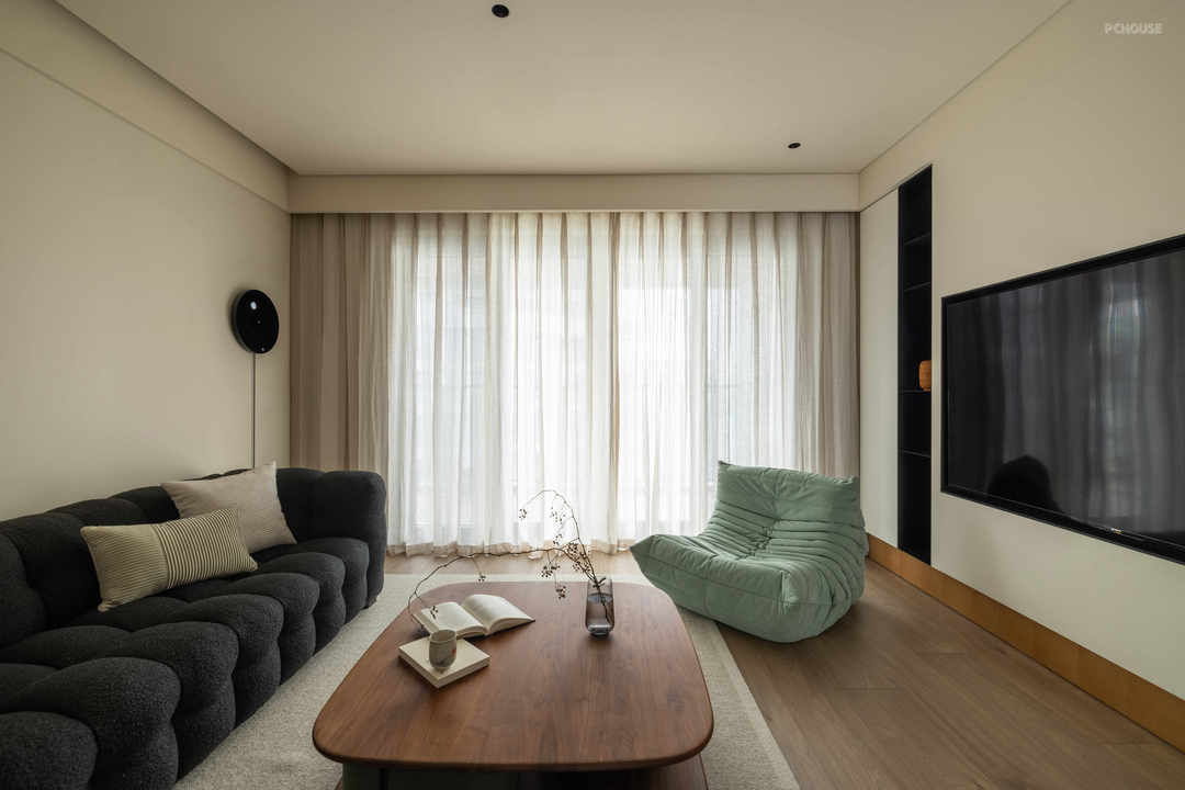 ●客厅以柔软与温馨的氛围为主,再选择薄荷色的Togo沙发活泼空间。