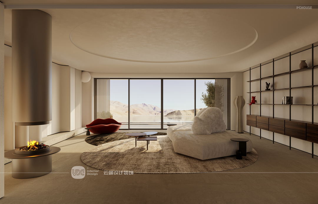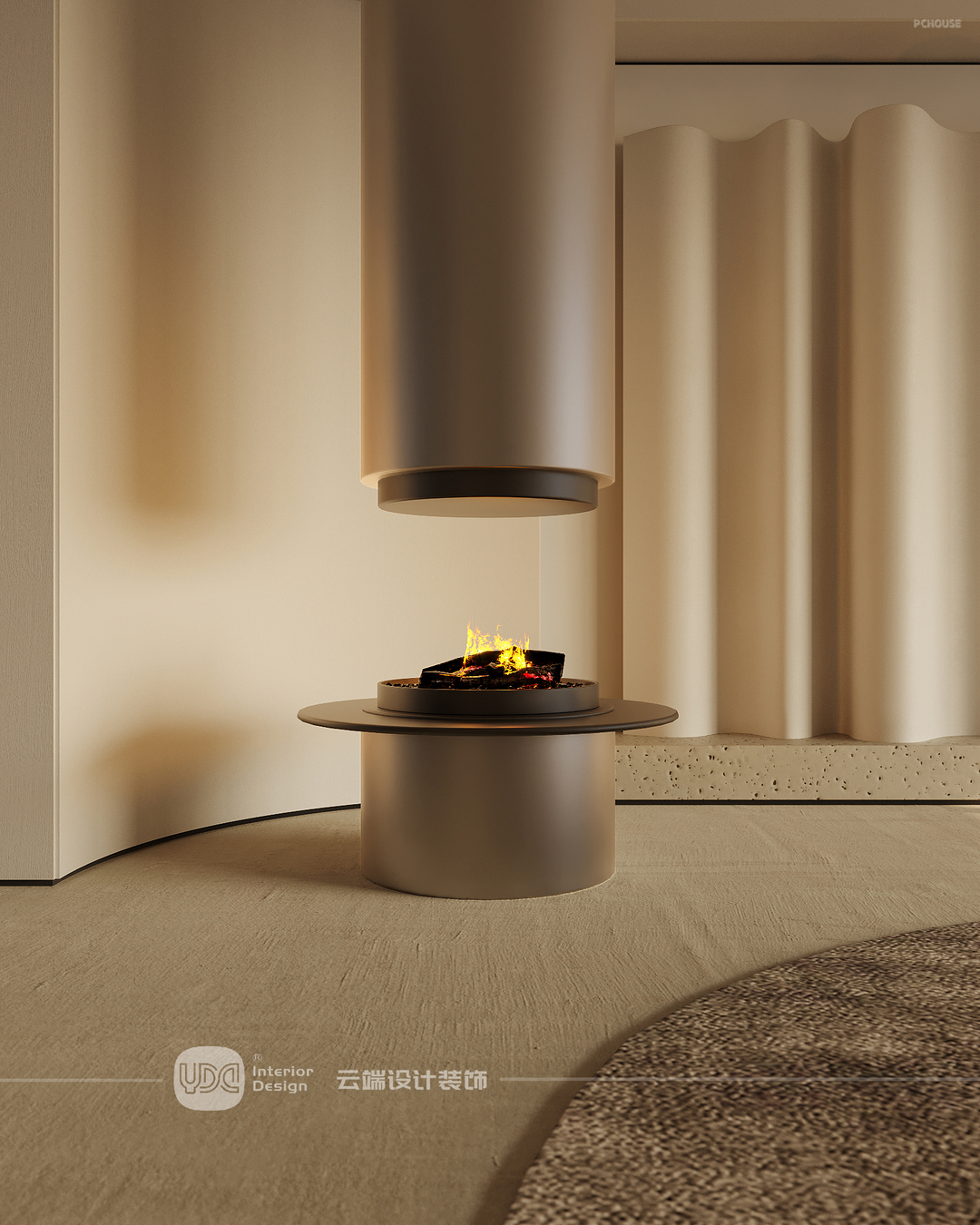 软装部分,特别挑选edra Pack沙发坐落客厅中央,经过阳光特殊染色后更显活泼有力,原本传统应用于电视背景、茶沙发背景,我们全用全面造型和极具艺术感的壁炉来取代