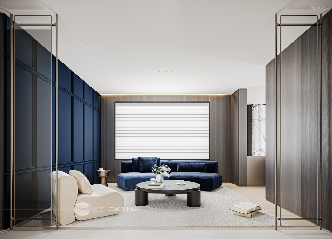 踏至客厅,可见深浅色交织的墙面,随意大利进口瓷砖延伸,尤显场域通透感