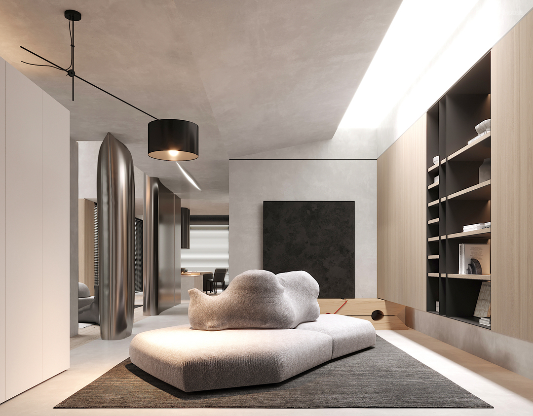 软装造型,采用曲线、棱角等弱化硬装上的直线几何