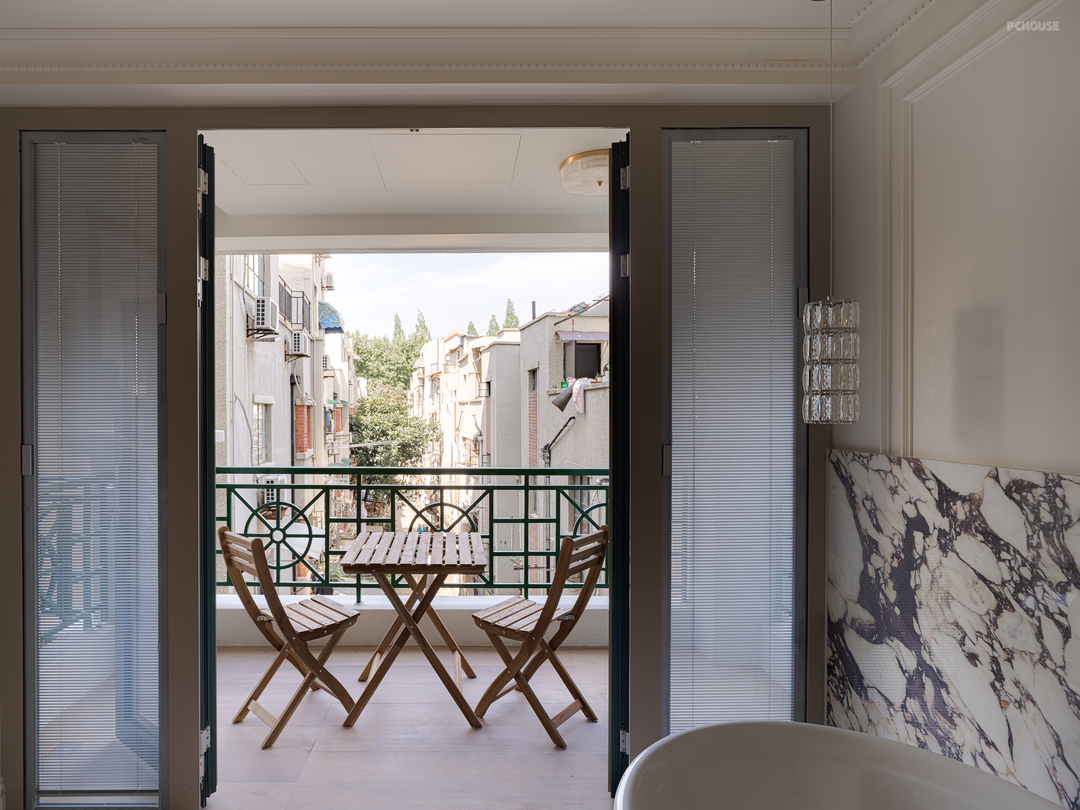 窗内是轻法式的慵懒,窗外是老梧桐区的腔调,室内外景观交融,成就了新上海的洋气。