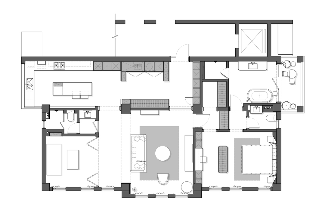 4. 直接将一间次卧改造成浴室,并入主卧,形成一个超大尺度主卧套间。