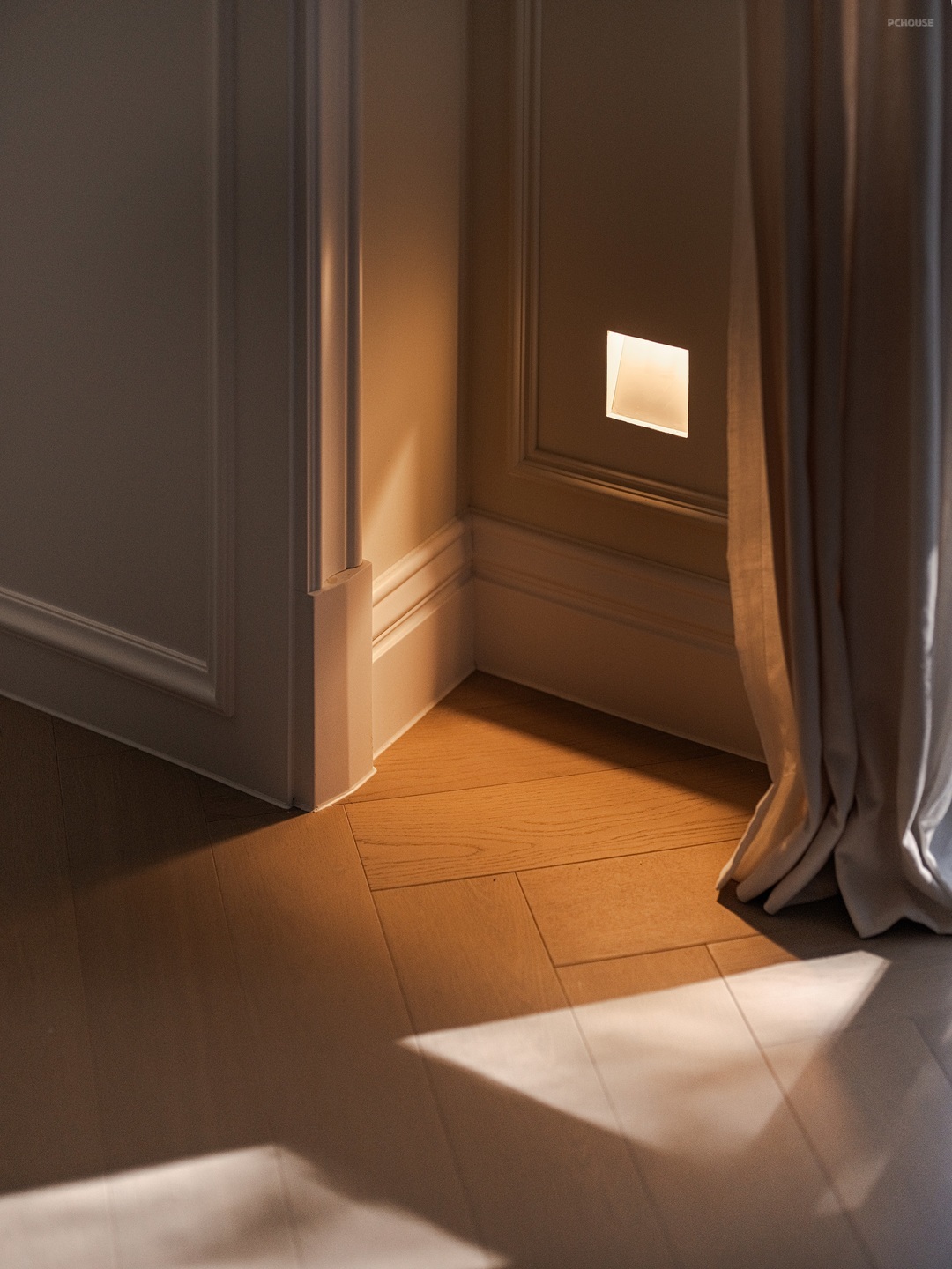 全屋都做了感应踢脚灯。