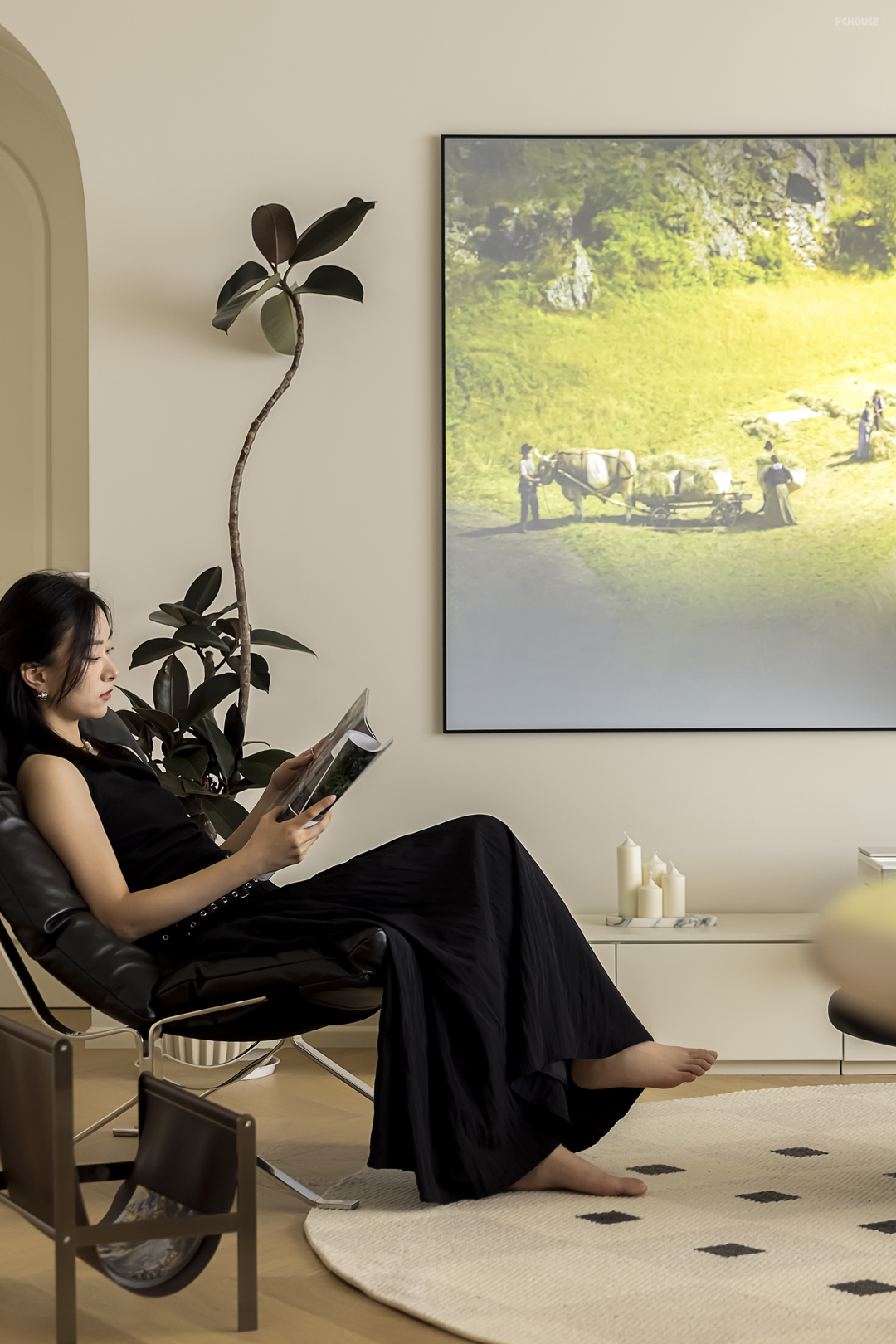 黑色质感、几何元素、抽象图纹……是非典型法式元素,冲淡了大面积奶白色的甜腻,多了一些理性思维的冷感,恰到好处呈现出介乎复古和现代的清冷文艺调性。