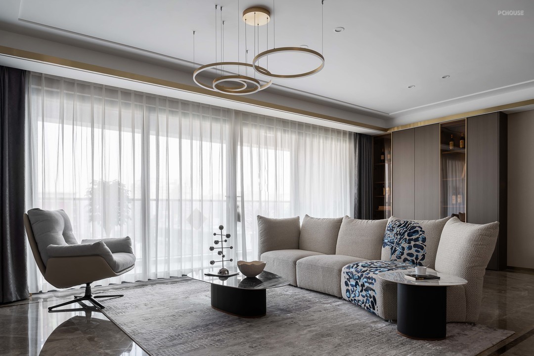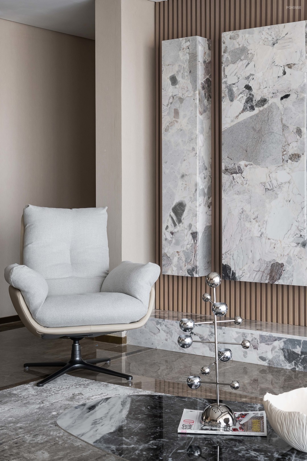 2、在现有的硬装设计的基础上做出调整和修改,将现代轻奢的调性更加深入的变现出来