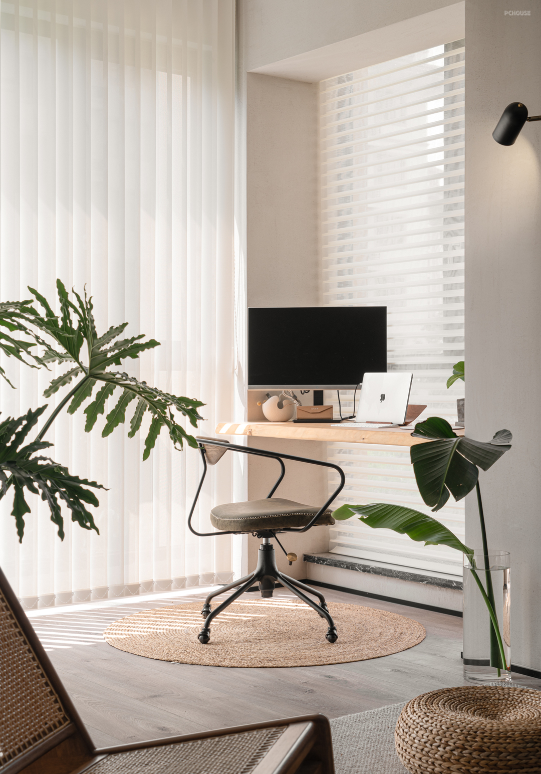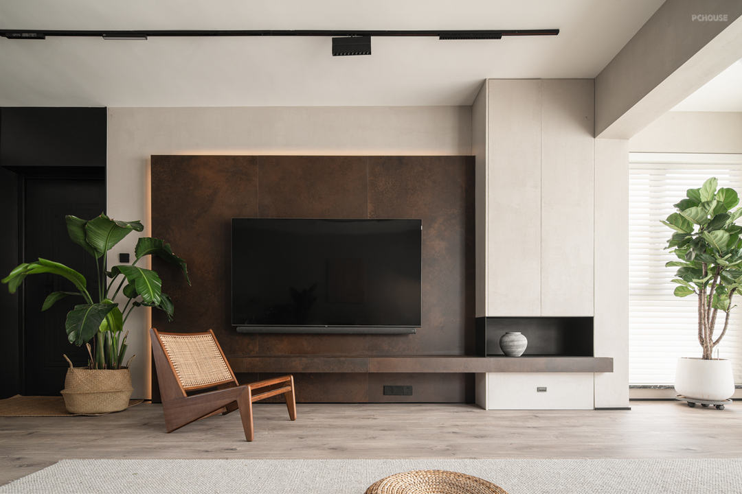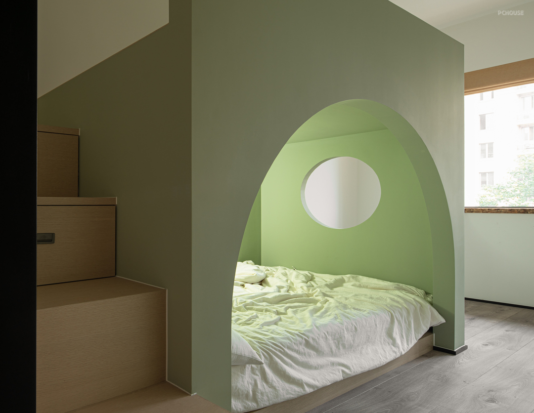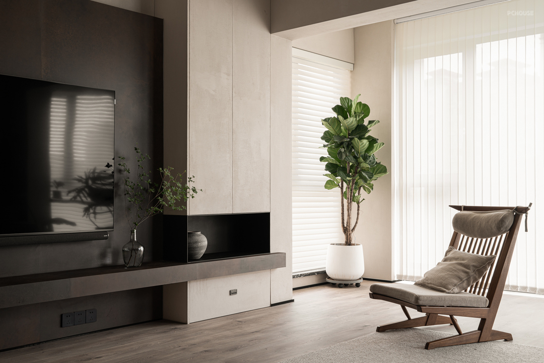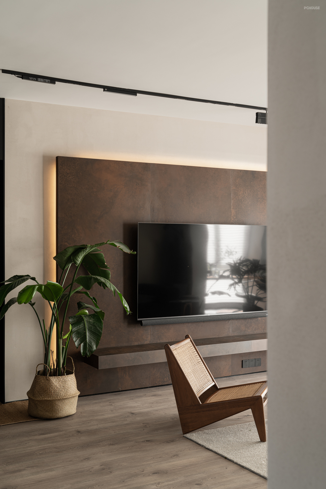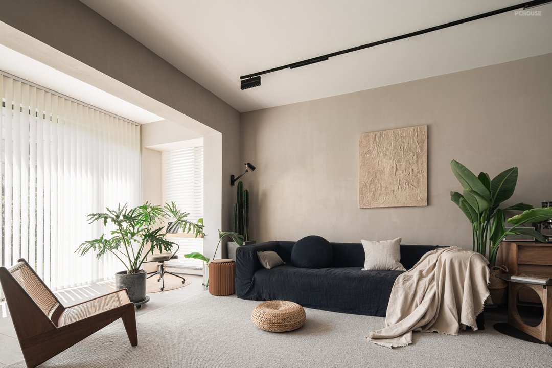 新家的材质和色调选择都偏向低饱和度,如果说工作与城市节奏是”向上走“的一个曲线,他们希望回到家有一个”向下沉“的状态。