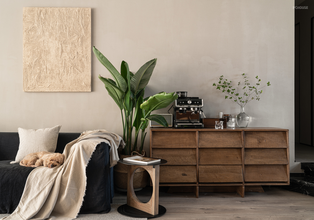 家里各个角落都安置了绿植,经过主人的悉心照料,现今已是枝繁叶茂。当感到平静,也就是大自然与生活相融之时,人仅仅是注视着画面中日光落在柜子上、地板上、墙面上便能感受到那里的静谧、平和、包容。