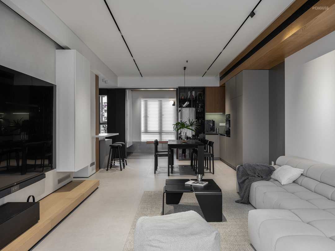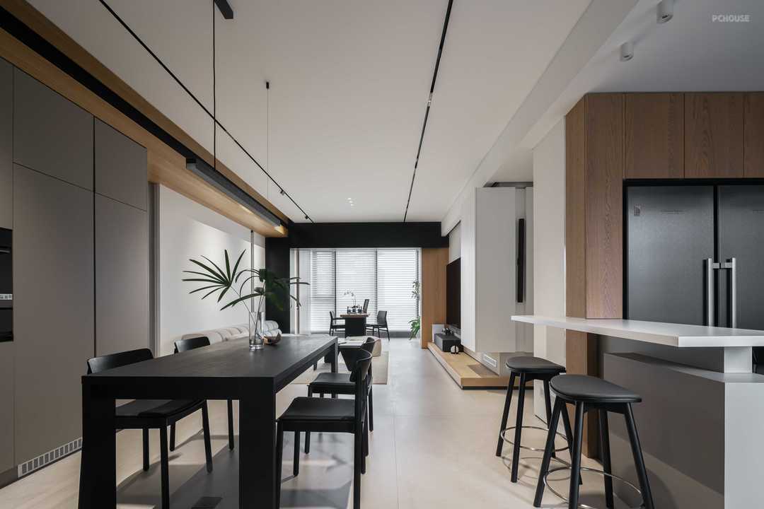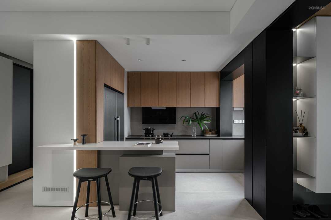 ②开放式厨房设计,将原生活阳台包进来,安排超大餐桌及吧台,中西厨皆配置冰箱,拥有多样食物存储,满足多人聚会及用餐;