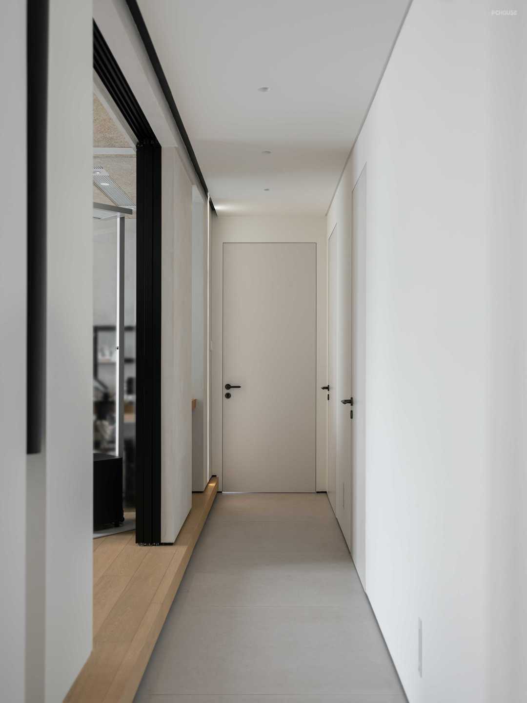 男主人信奉里尔克的经典名言,“我们必须全力以赴,同时又不抱任何希望。”因此在书房安装玻璃门,隔绝噪音专心工作(木丝吸音天花板,利用机能材料的本质状态装饰的同时,又具有优越的吸音效果);同时也方便孩子进出,满足陪伴需求。这两个联通的空间,贯穿主卧,形成环形双动线,丰富使用场景的同时,也保证了主卧隐私。