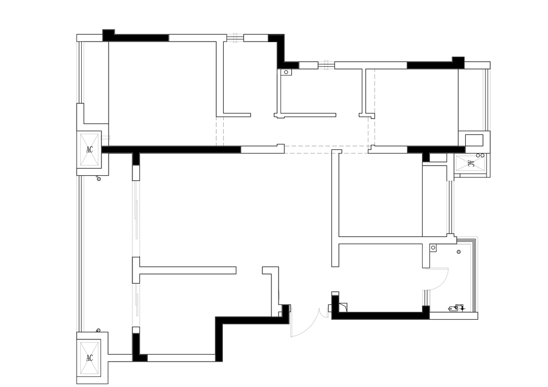 3.拆除入户异形房间,增加公区的进深。改善公区视野、动线以及鞋柜储物。