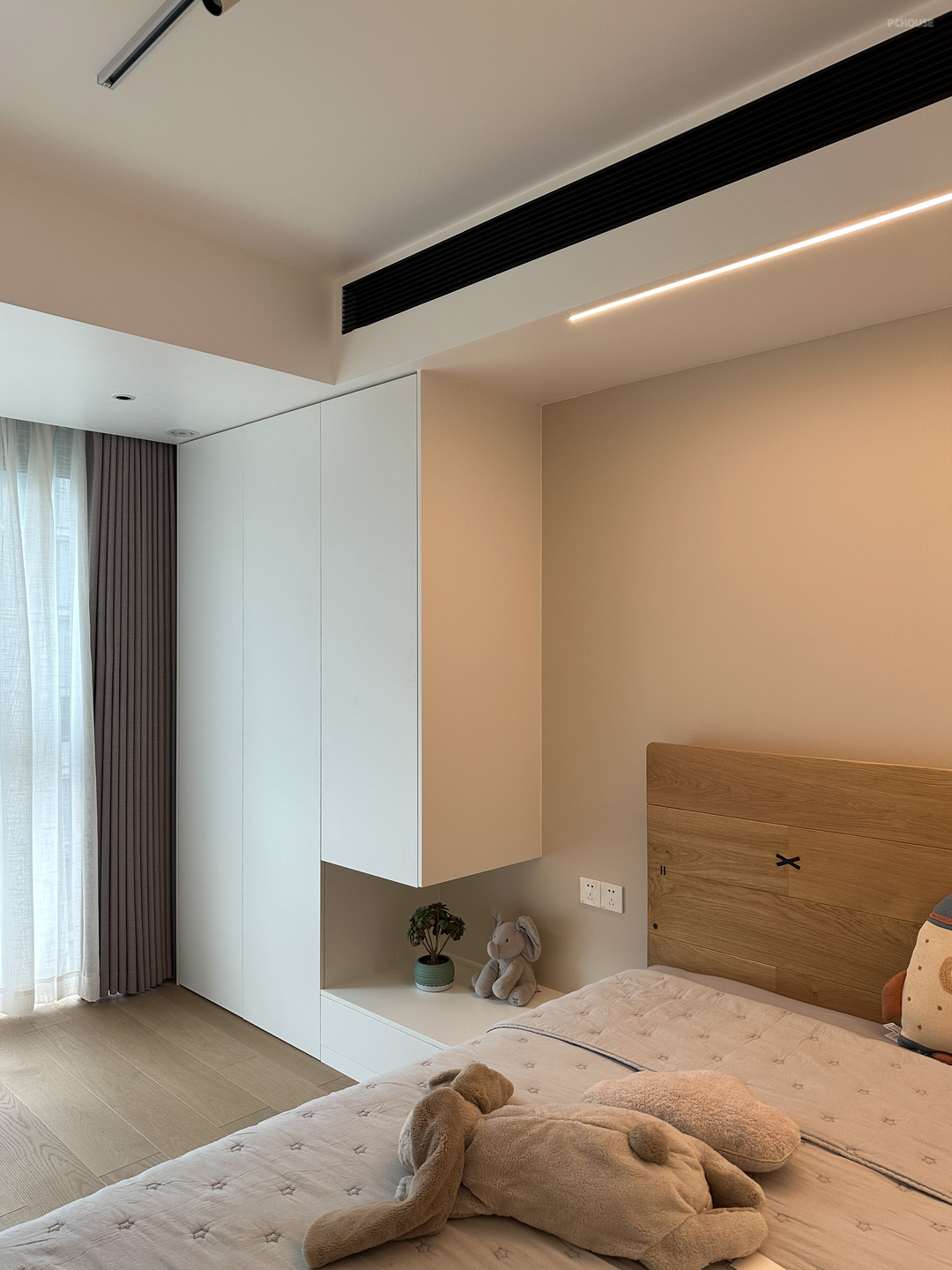 基础需求:关键字 三口之家,简约风格,其中整屋新风和地暖作为主要刚需,因为喜欢睡觉安静,大概率是长时间不开窗,如果不装新风除了冬天其他三季不开窗都很闷,厨房不做开放式,需要有一间女主人的专属衣帽间;
