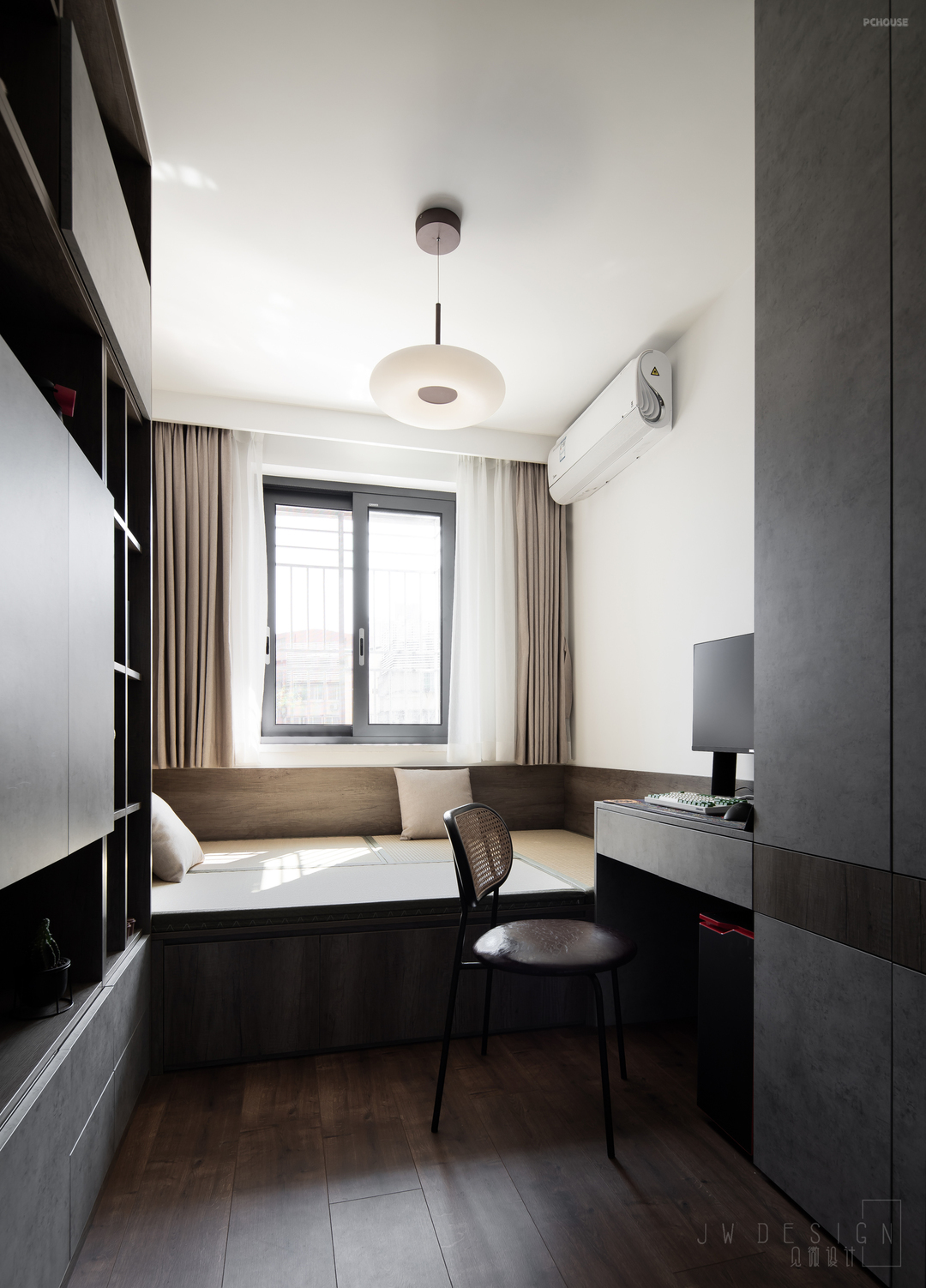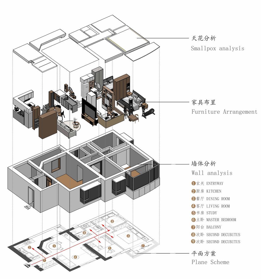 4、过道空间调整后书房做成推拉门,阳光可以引入。