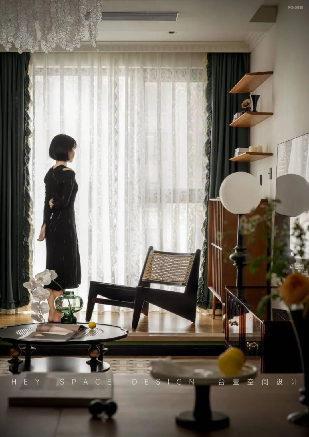 @合壹空间设计:弧形的造型让整个空间更流畅柔和,契合复古调的优雅,地面的抬高,让空间的层次感更加清晰。