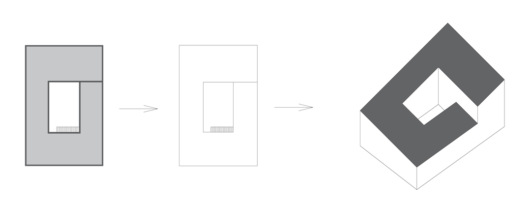 原四合院使用面积300平米,整体一层的围合式院落,原址拆除后,我们设计团队重新规划建筑设计,利用高低落差感,设计围合式渐变斜坡式的屋顶,坡度由北面的高度逐渐降低至南面,最后北面设计出一层+二层loft的客房。总层高既达到了建筑要求,内部也增加了楼层数。使最后建成后,总使用 面积达到了500平米,在原来直接增加200平米使用面积。