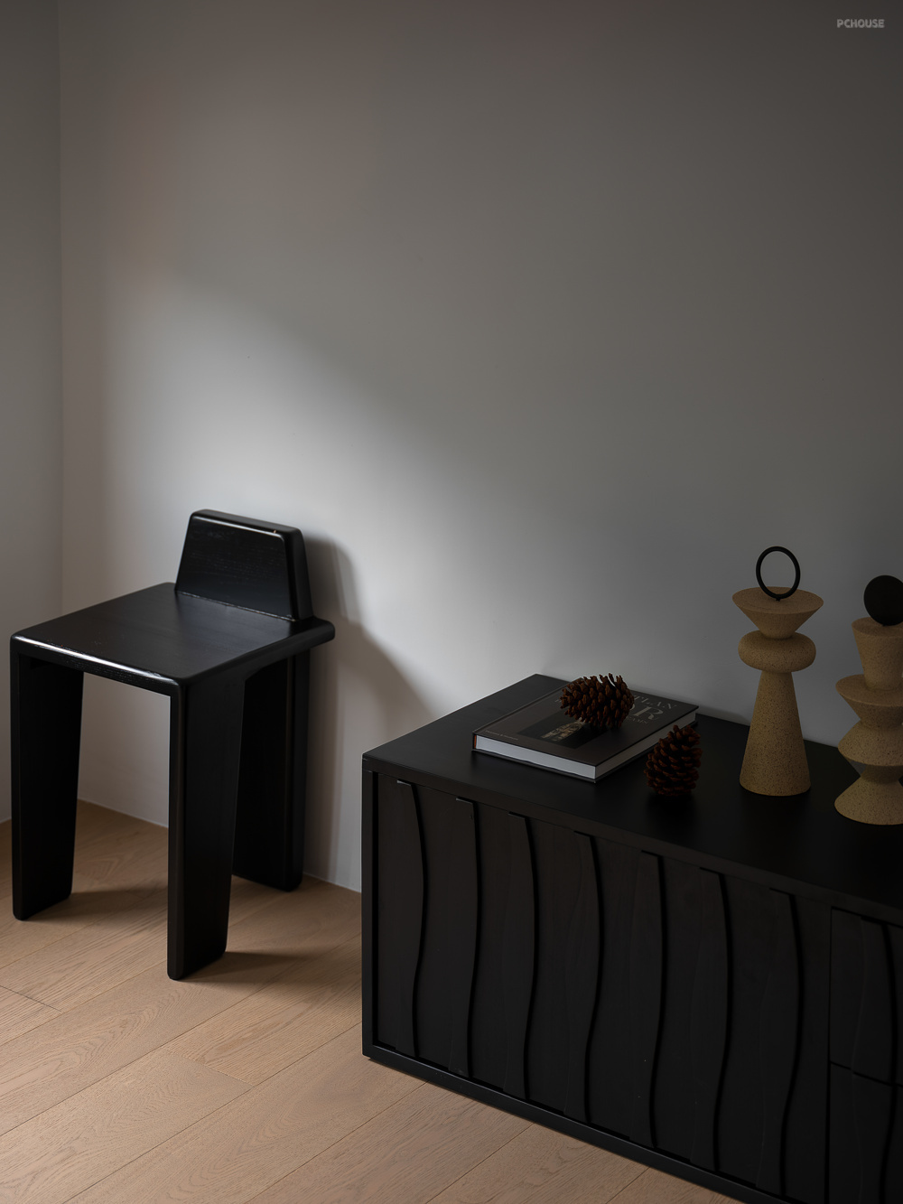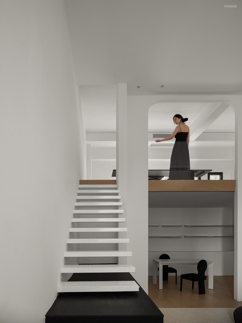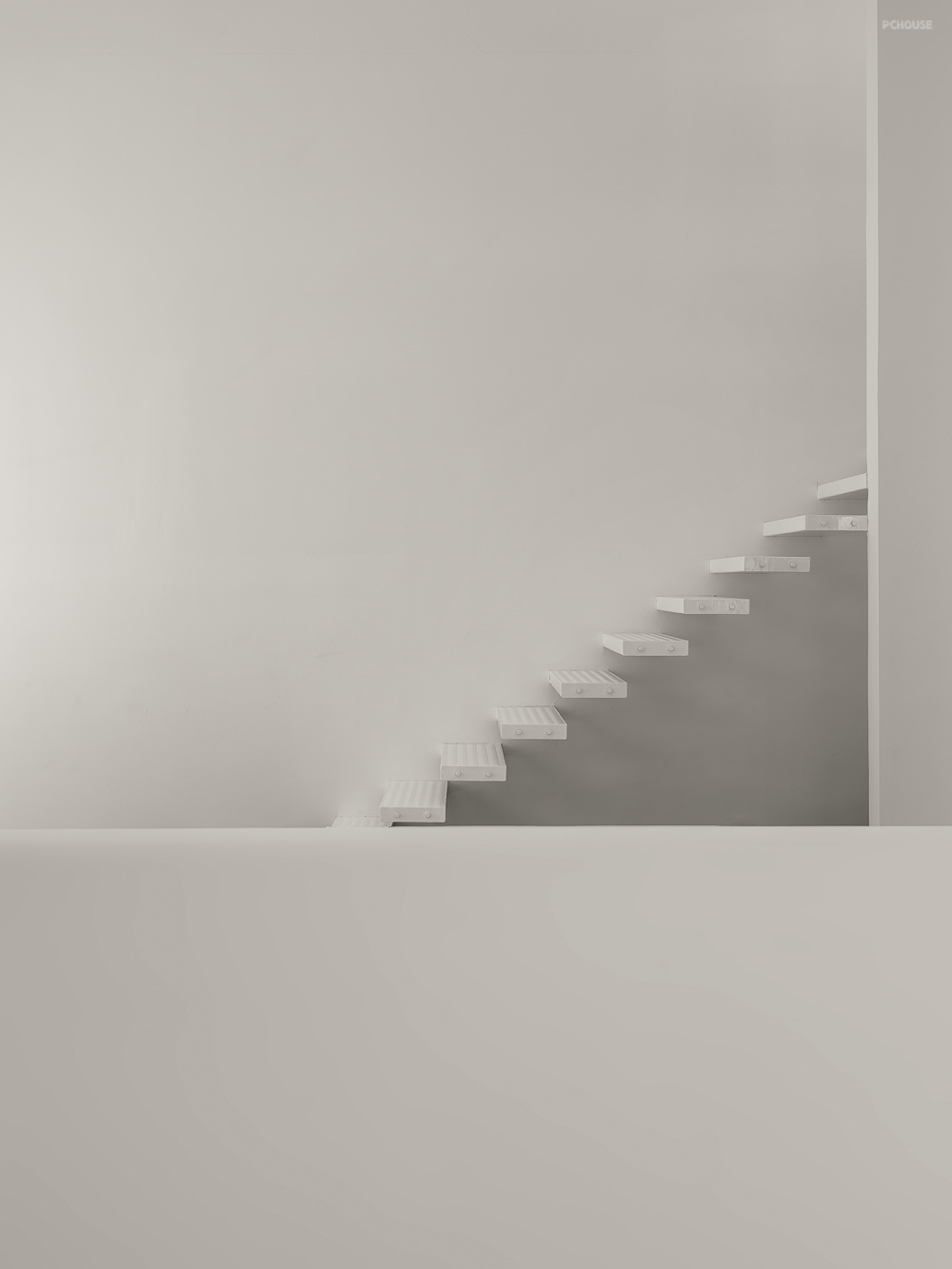 在空间的界限中,运用理性的设计重构秩序和规则,进而形成一种突破和创新。以极简的黑白灰线条构成空间骨架,转折或是透视,空间关系层层递进,传递一种微妙而深远的空间张力。