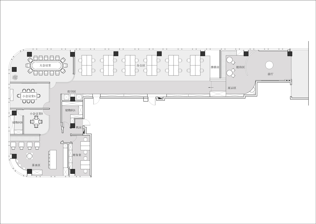 大会议室相对正式,能同时容纳12-15人的会议需求。
