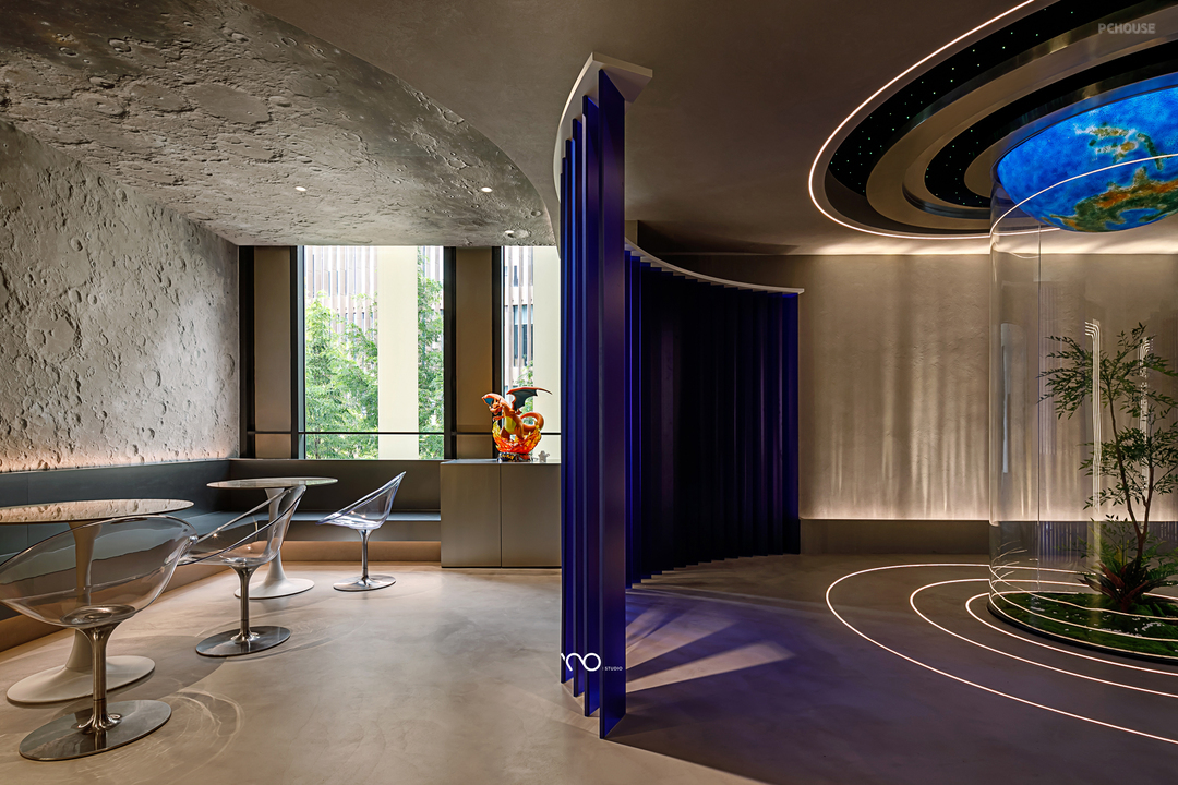 办公前厅,聚焦宇宙视野,城市的喧嚣被敬畏和寂静所取代,让人忍不住站在门口久久注目。