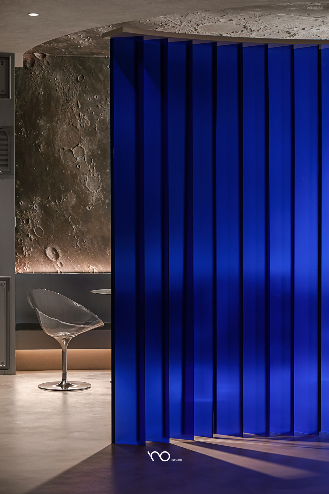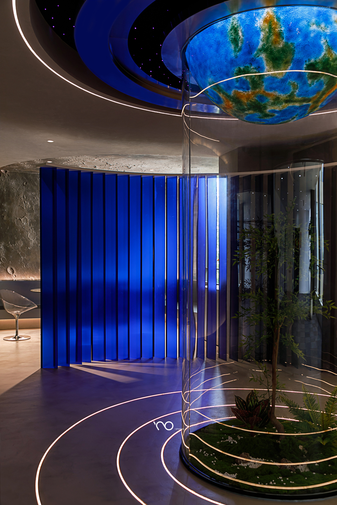 灯带、钛合银柜面、蓝色亚克力挡板,再一次紧扣探寻宇宙的空间主题,微部的匠心担当着最恰如其分的体验感。色彩的对撞,成为空间动线上的指示。