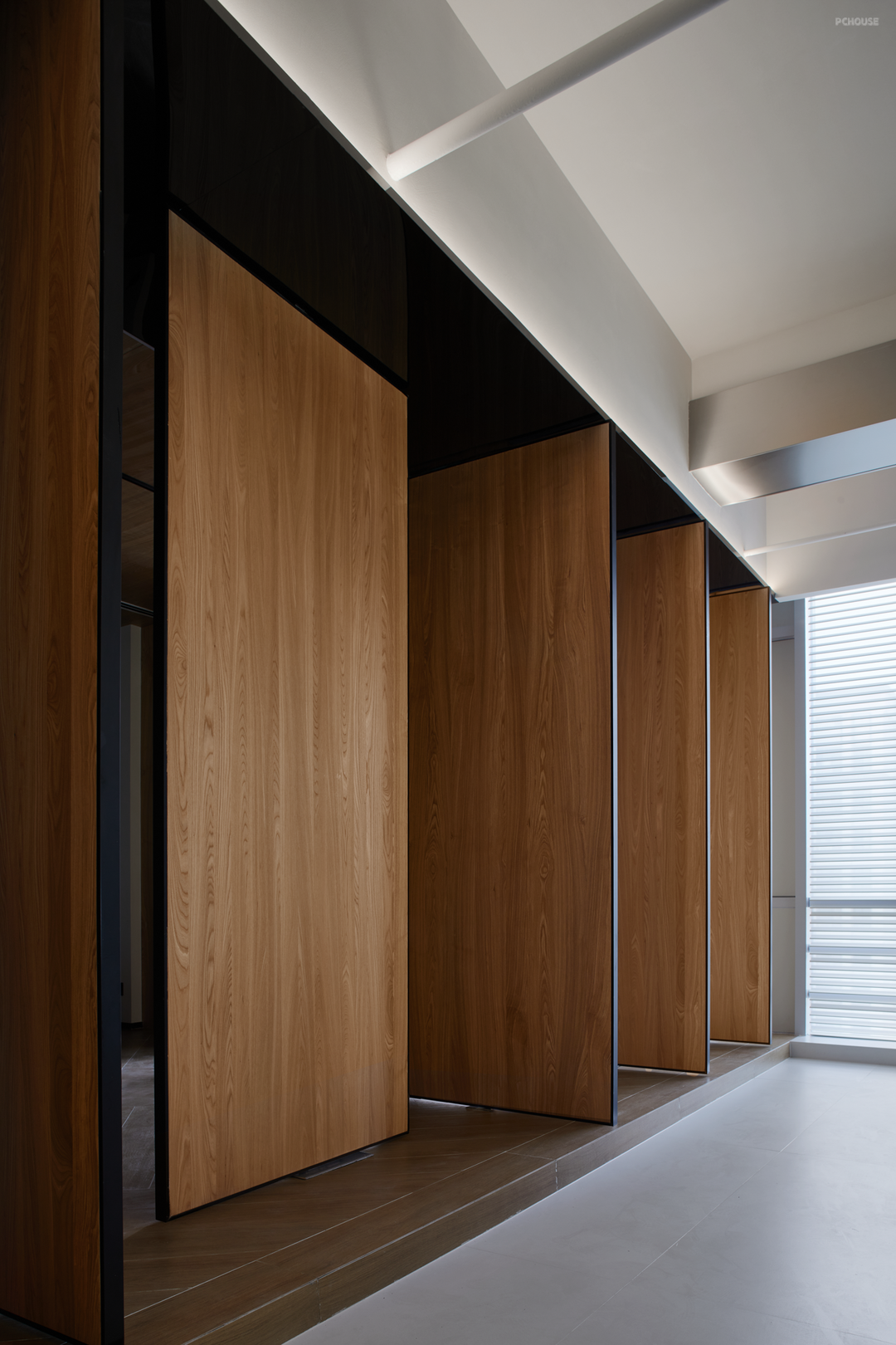 商议的时候便可将移门打开,形成矩阵状,增进了空间的建筑感,也在潜移默化中强调了工作的严肃性。