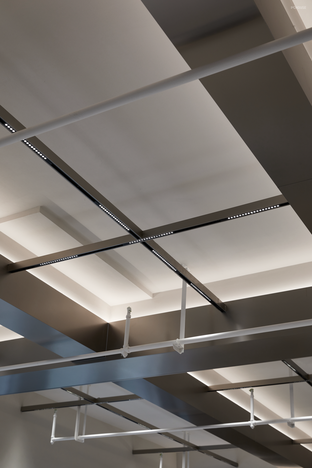 磁吸的轨道灯和镜面拼接处巧妙结合,添补了空间的结构感,彰显先锋和时尚。