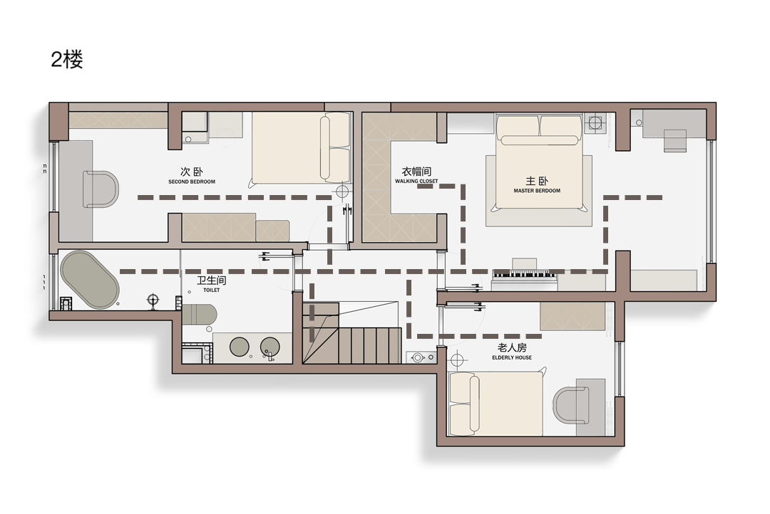 ②2楼三室空间分作三间卧室使用后缺乏书房的空间区域。