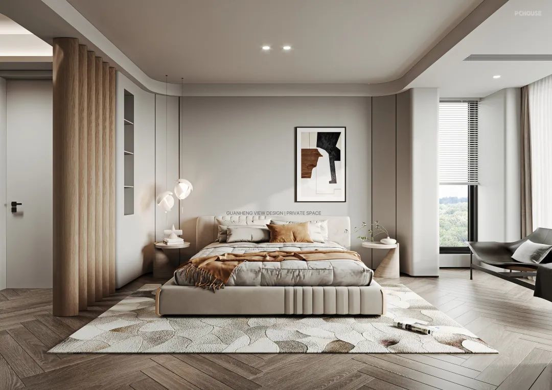 本案为九曲花苑项目,掩映在山林间的欧式小镇,依东高西低缓坡地势,巧妙融合宝华山的精美生态中,清新有度。是业主一家在南京的主要居住场所,男主人年近花甲,从事影视制作行业,对生活品质有着极大的要求,对艺术和美学有着深层次的见解。设计师将现代艺术融入人文居所之中,营造出电影氛围的空间意境。