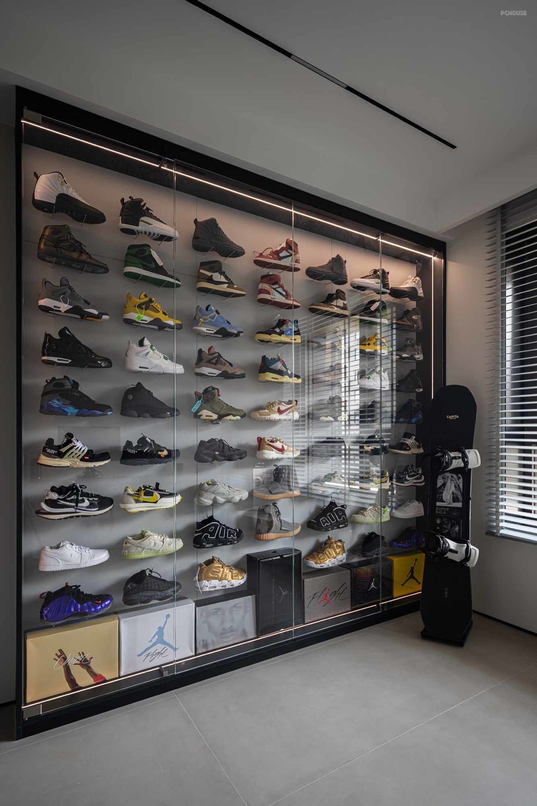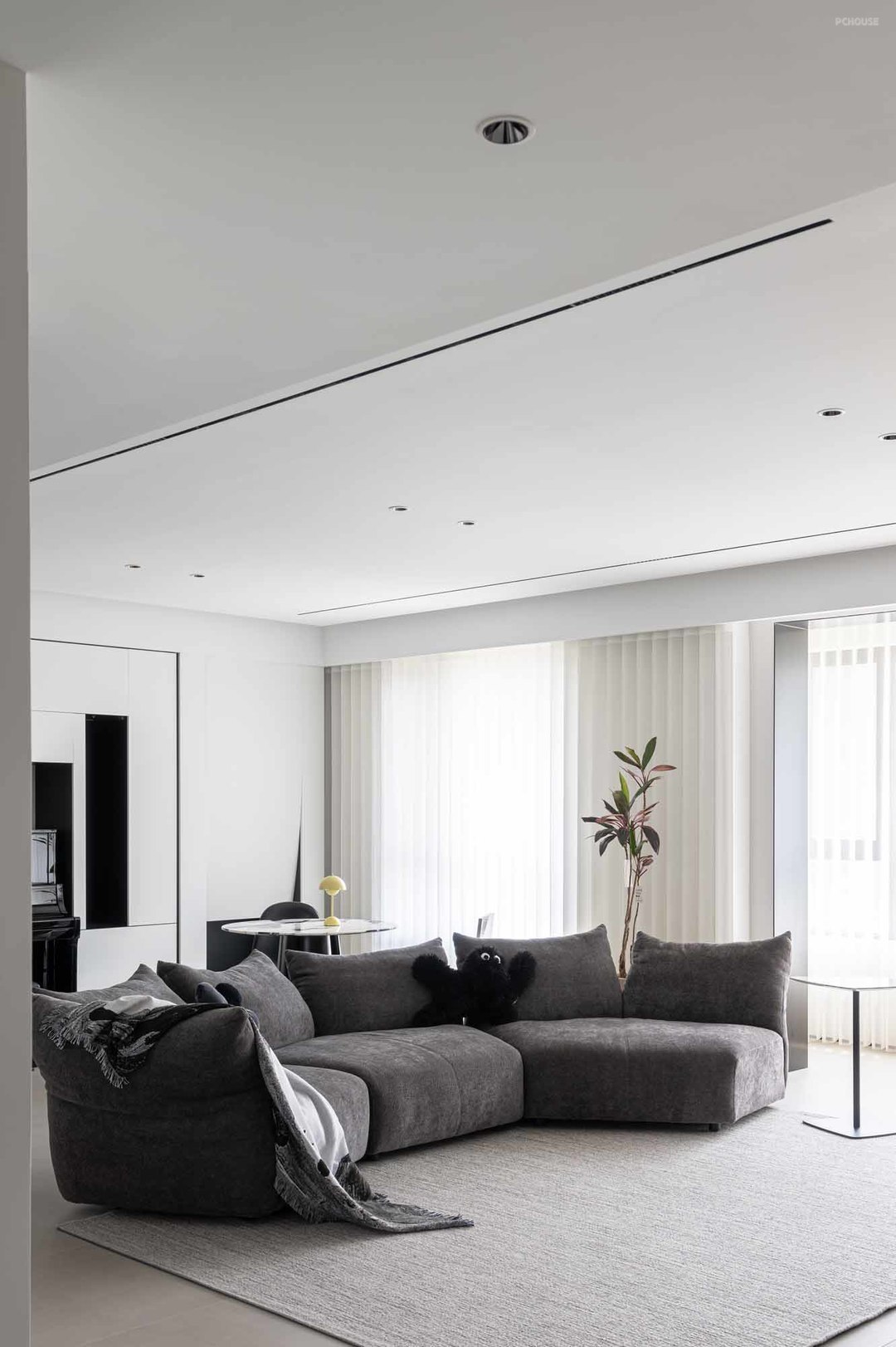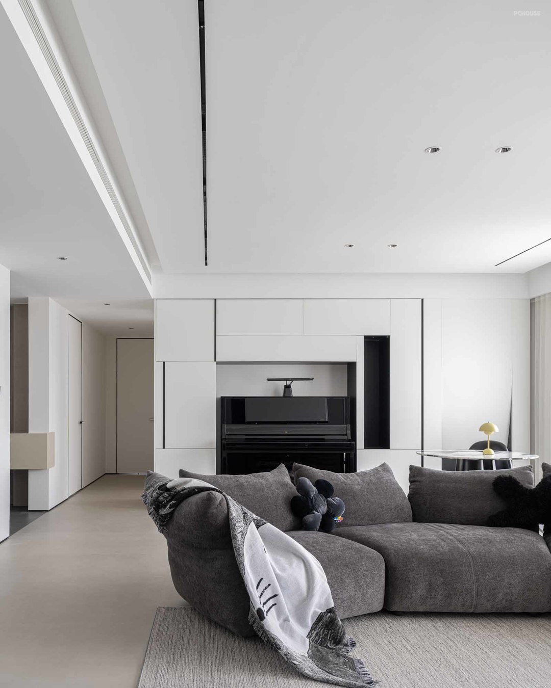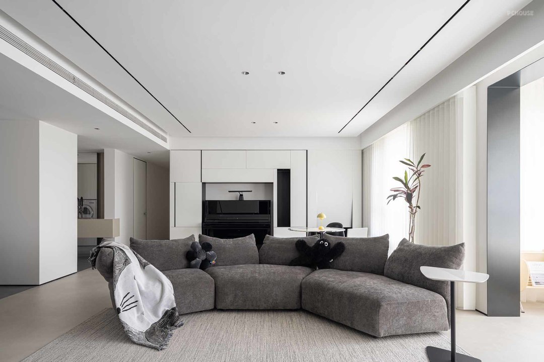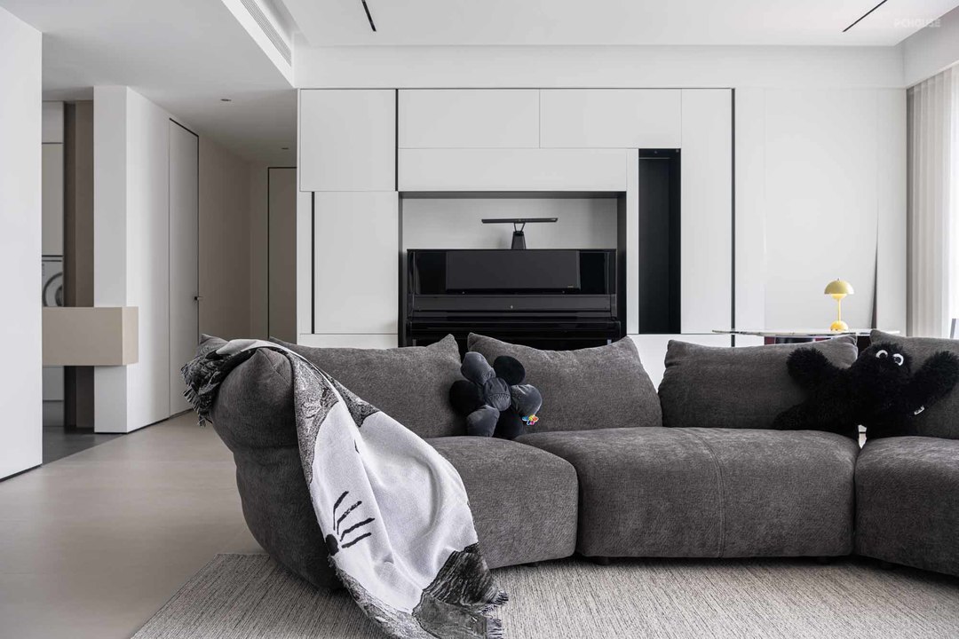 黑白灰为主色调,完成一个纯粹的现代极简风,屋主热爱美术,喜欢收藏潮玩与球鞋,我们将这些爱好融入本案的设计中,整个空间兼具艺术品味,让人感受家的温暖,真正体验舒适的生活氛围。