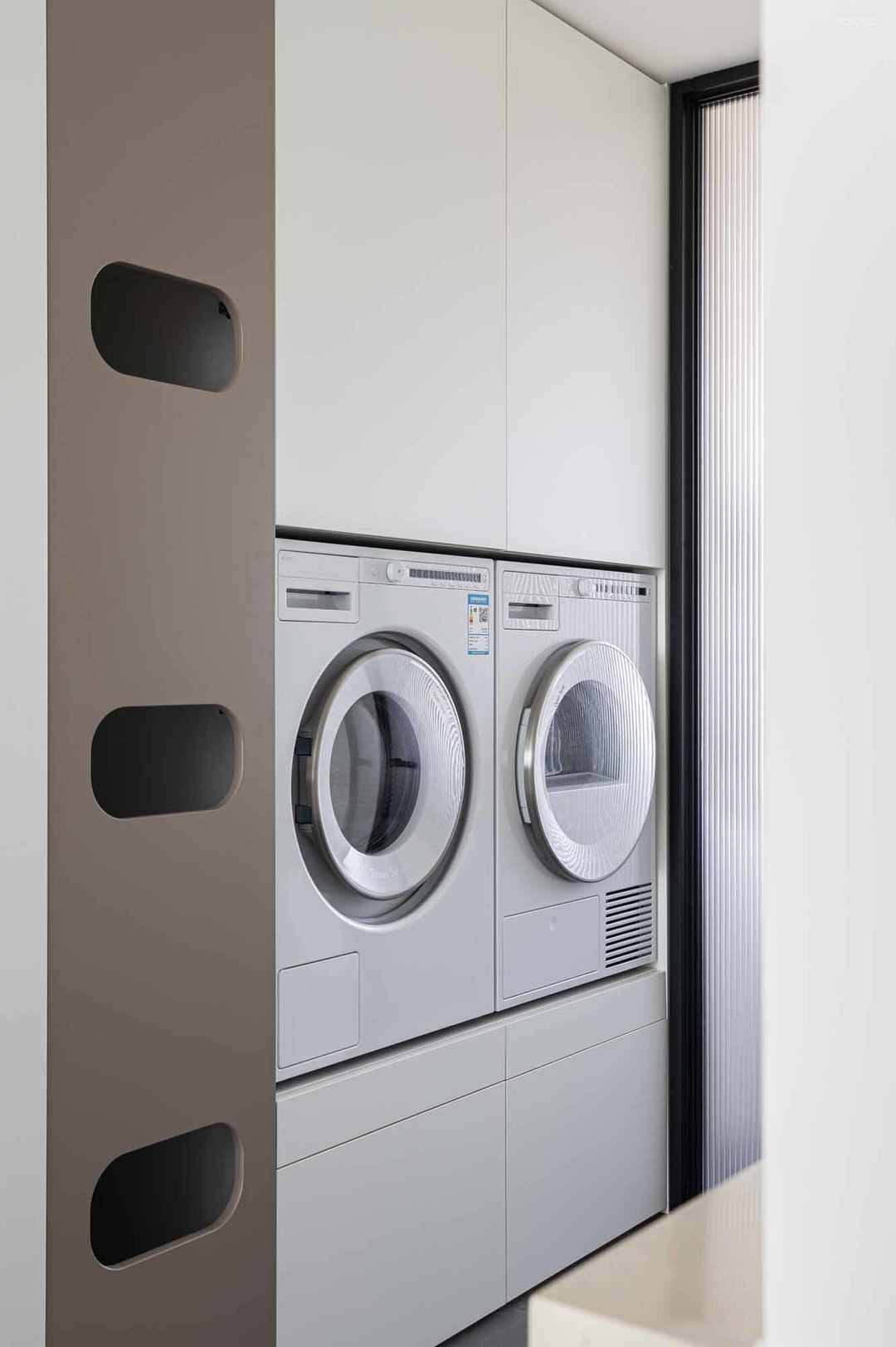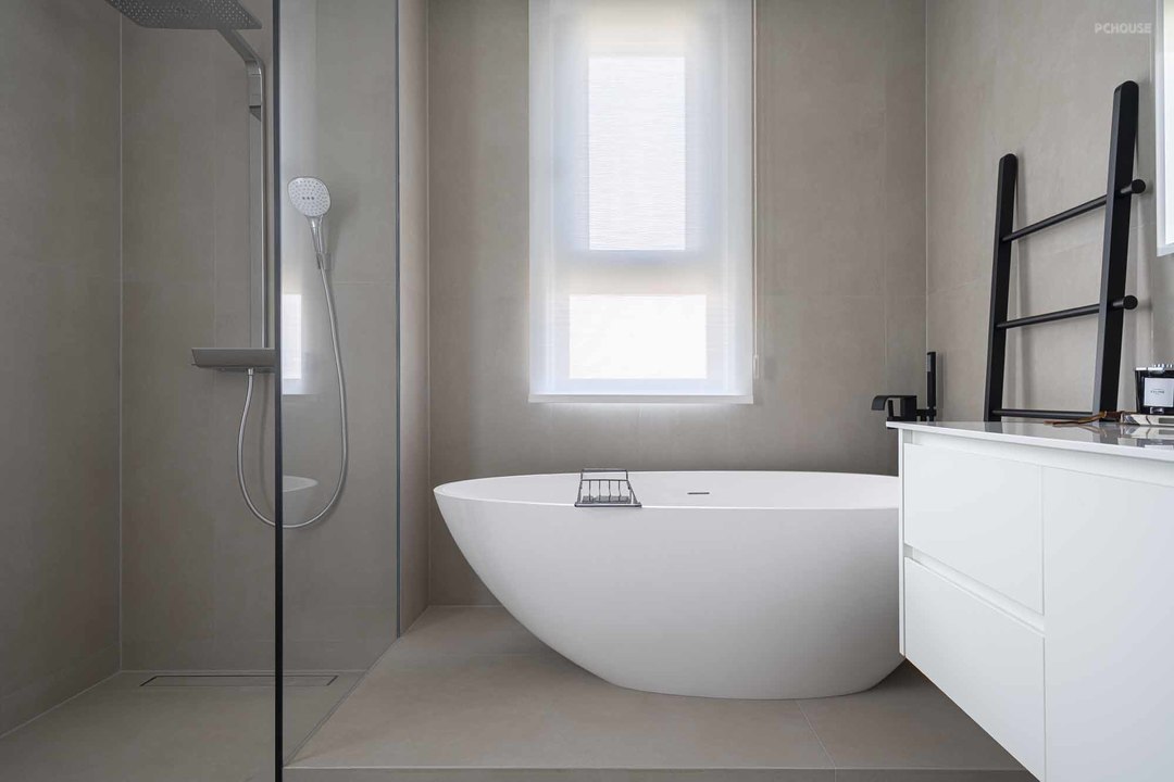 3.客卫摒弃淋浴房,放大洗漱区域,同时将洗衣区放置于此,让洗漱台利用率更高;