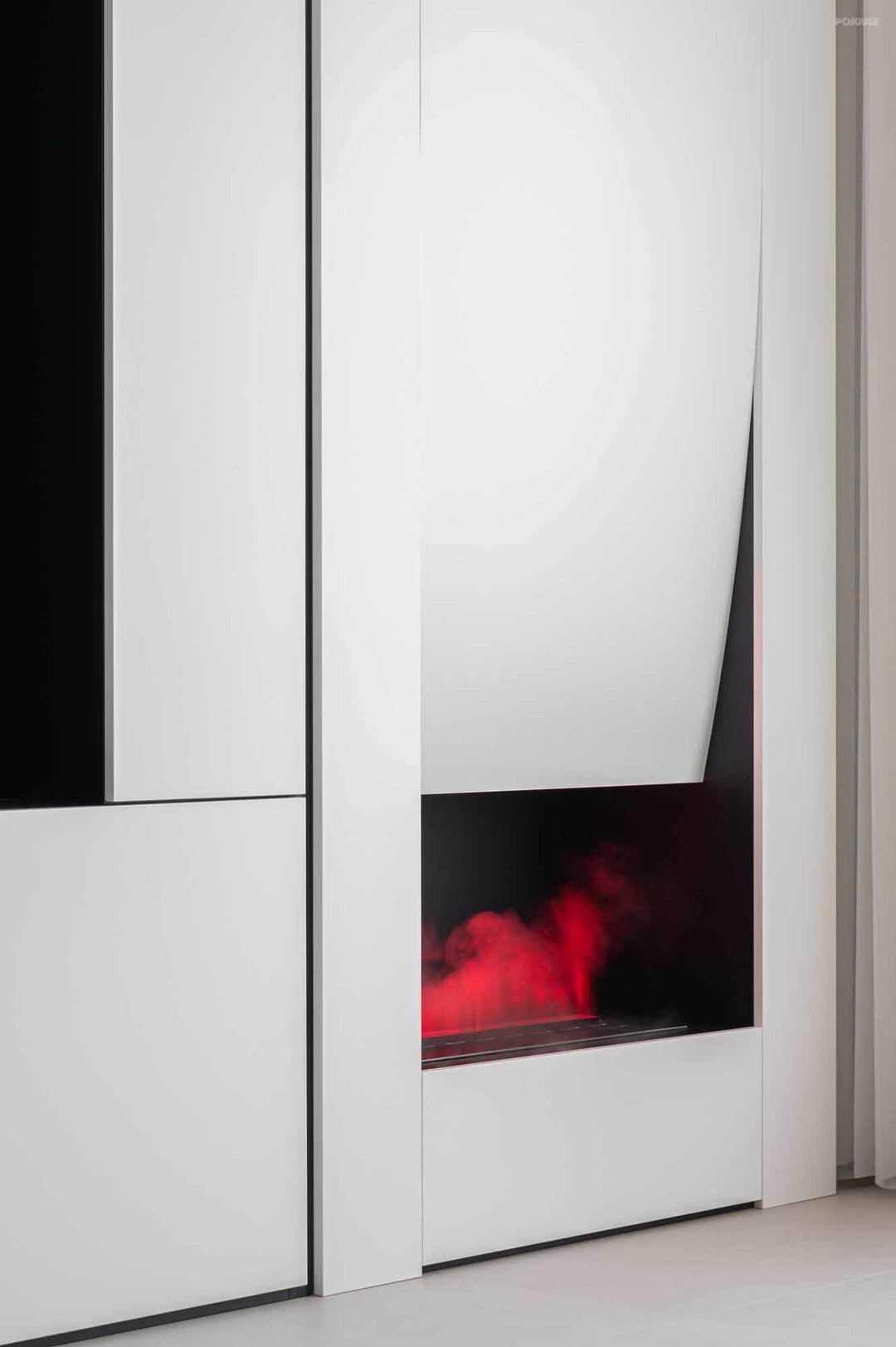 与此同时,空间布局上依靠屋主生活习性,将收藏缀满书房,如同商场的展示品,带来视觉的震撼,彰显屋主的生活格调。大横厅分一部分打造钢琴区,让空间尺度更加和谐精致,靠窗摆放小圆桌,依偎壁炉营造温馨休闲氛围,家的惬意感应运而生。