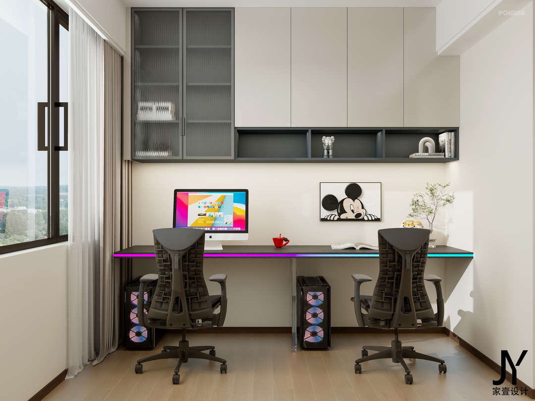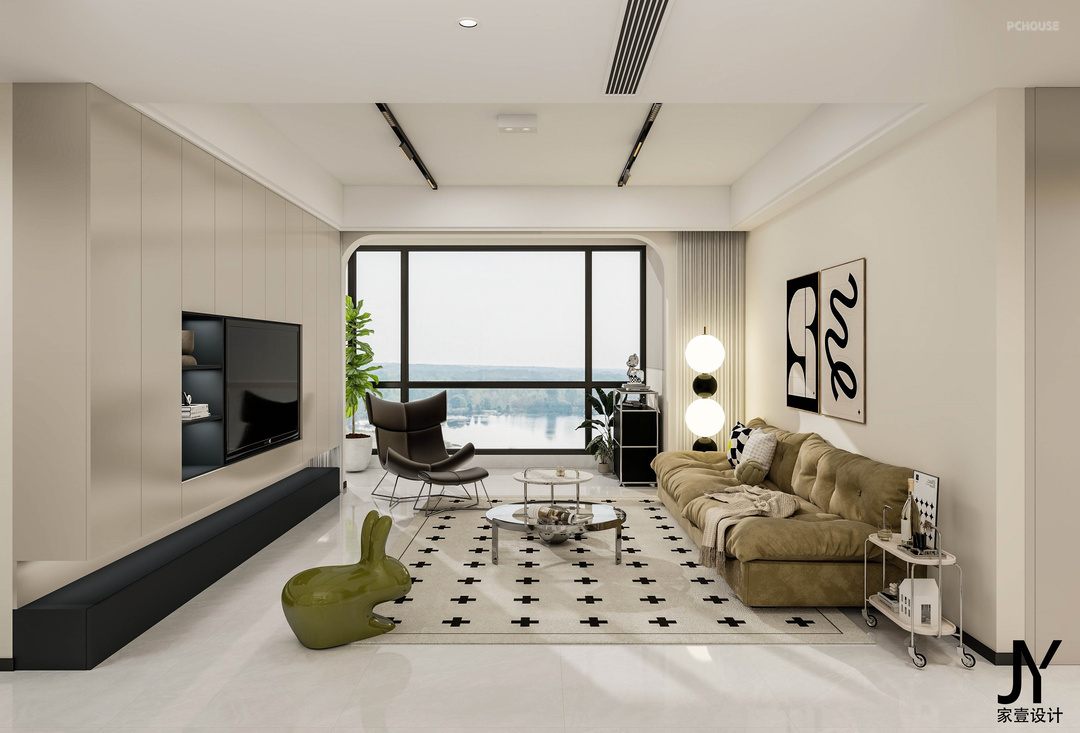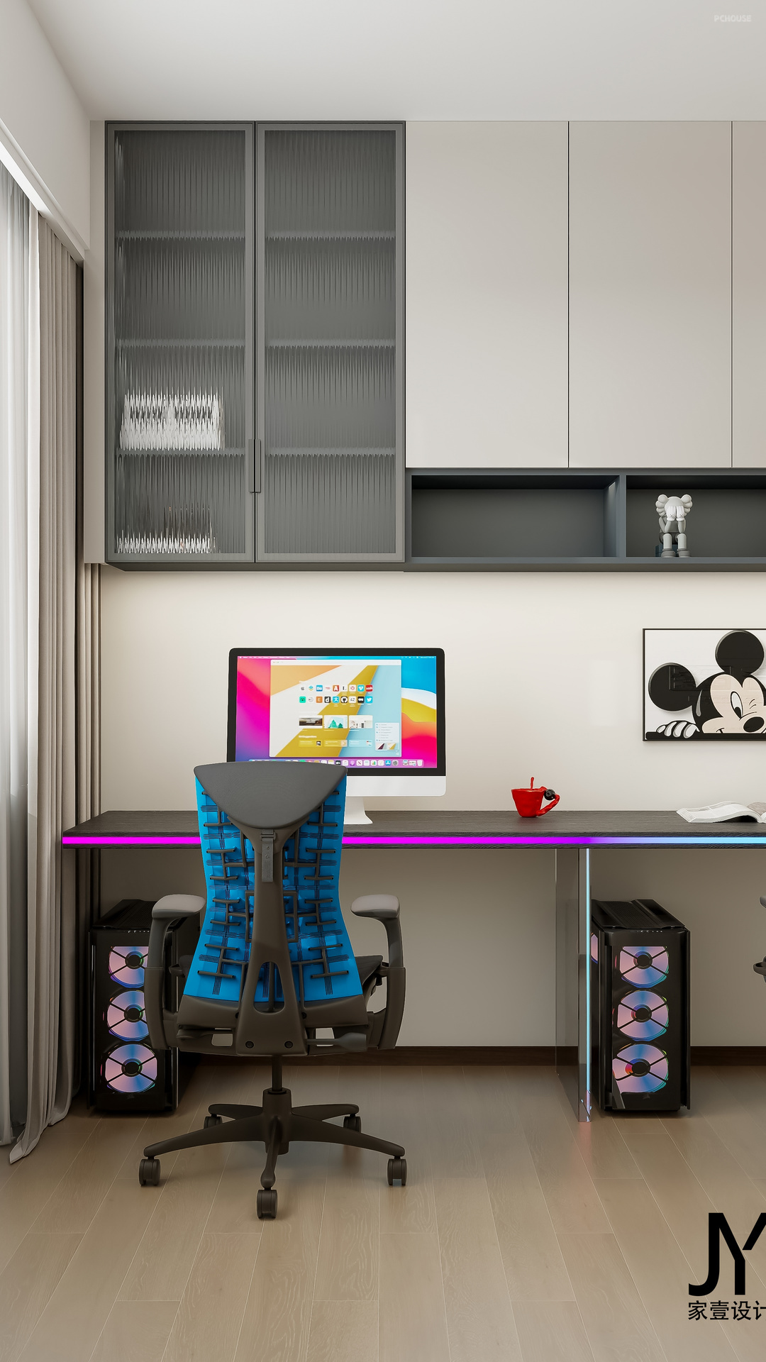全屋定制柜考虑到了提升每一个功能区域的收纳性,也兼顾美观,基本设计时做了免拉手柜门,增加颜值的同时为业主降低成本。客厅在尽量不动硬装的前提下,设计了明装无主灯。