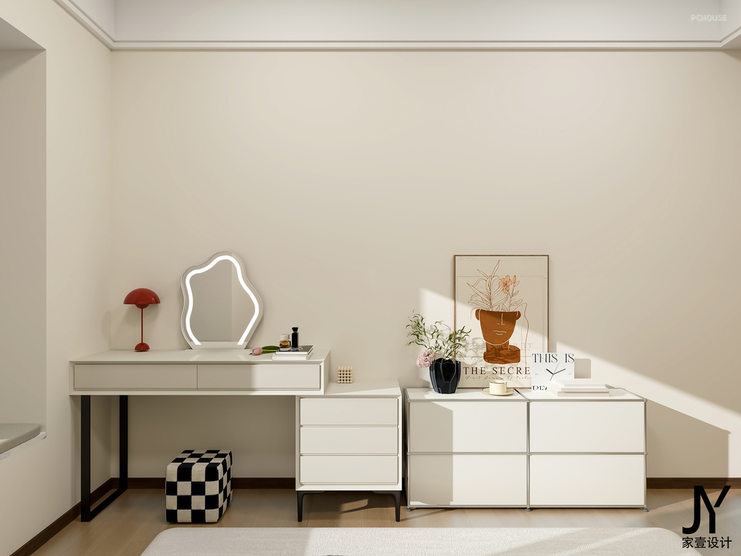 床尾的位置可以增加一个单独的梳妆台和边柜,方便实用。