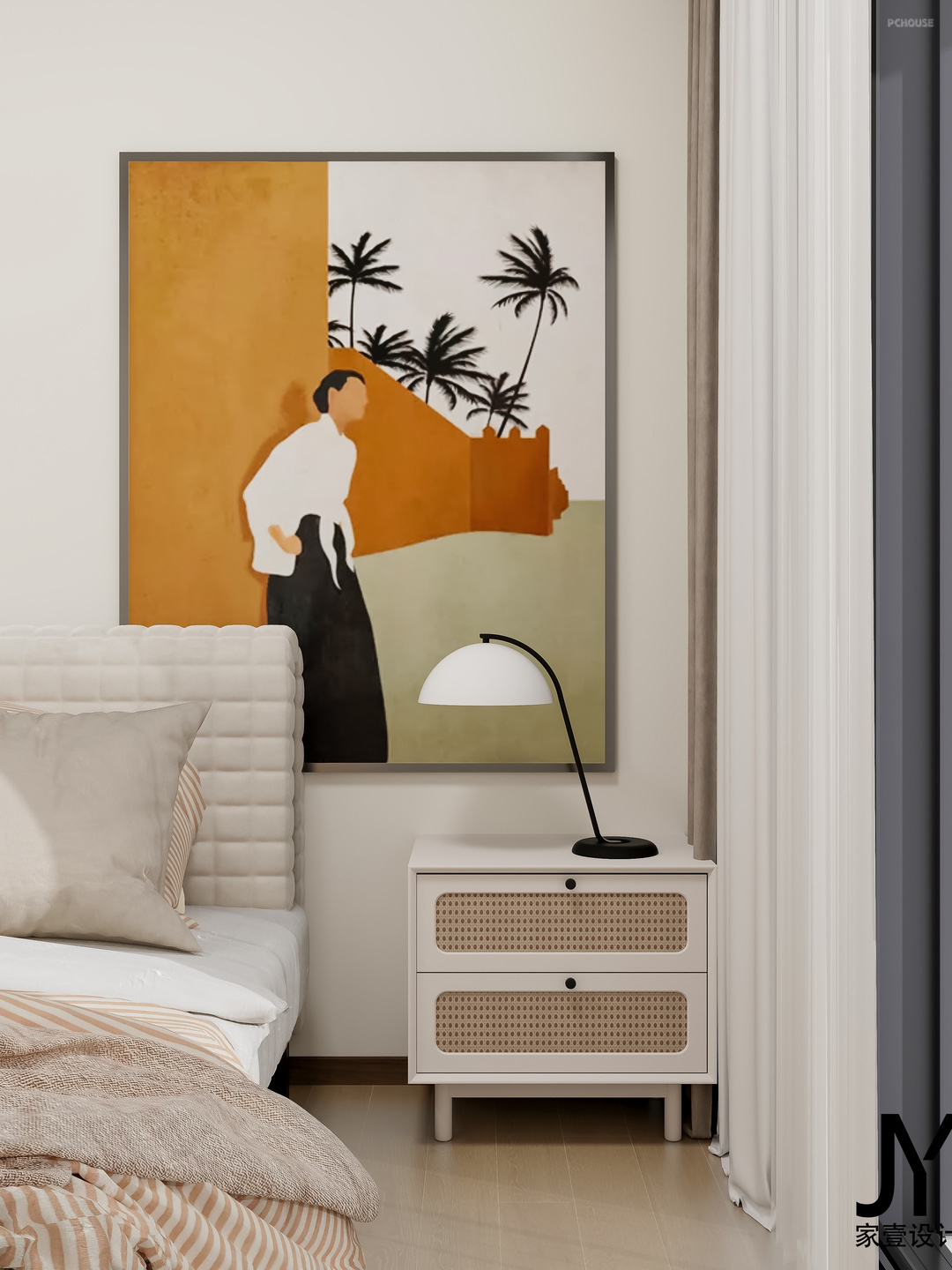 色彩丰满的装置画调节整个主卧的软装氛围,是眼前一亮的点睛处。