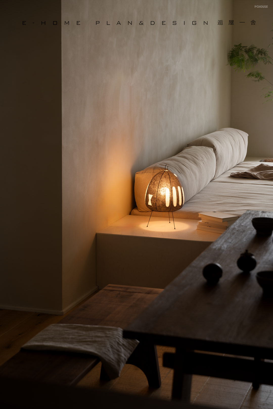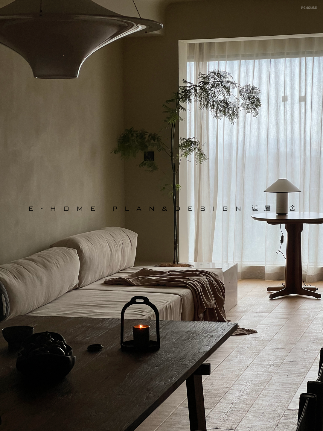 侘寂风格里的松弛氛围是她向往的,设计师从现代风格到素朴侘寂的跨越,依旧从基本问题出发:“我们要坐在哪里?一天如何放松?琴房怎么布置?”