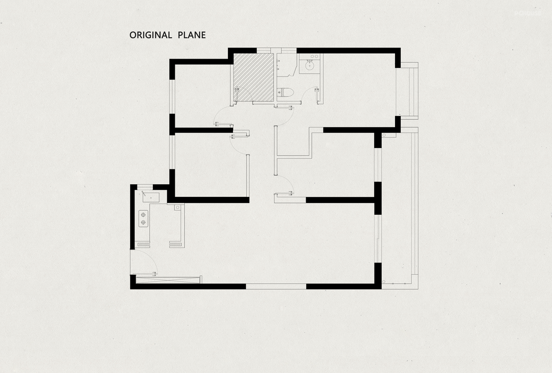 光线从阳台笔直通向玄关,采光通道没有做任何的遮挡和变化,设计师从材质和布局中让这个家变得不一样。