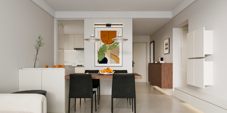 通过空间利用,设计师将阳台和靠近客厅的小房间释放纳入公共区域,巧妙运用折叠门和 吊轨门将空间自由组合,可以应对不同的场景需求。
