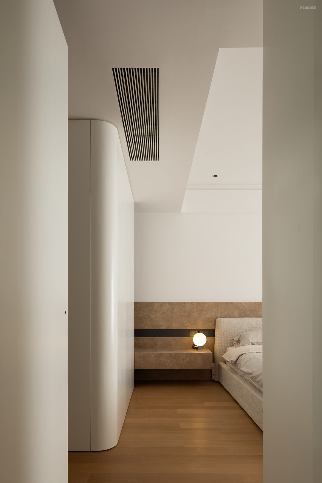 时光静好,木色温情。与自己对话,与灵魂相遇,享受着专属的静谧之域。用弧形的元素去营造圆润轻巧的转与合,借用木白的线条勾勒出环抱的臂弯,延着柔和而流畅视觉感带出无限的空间想象。